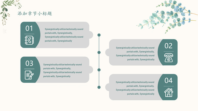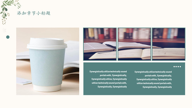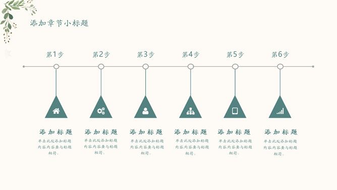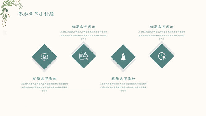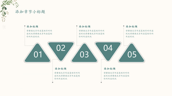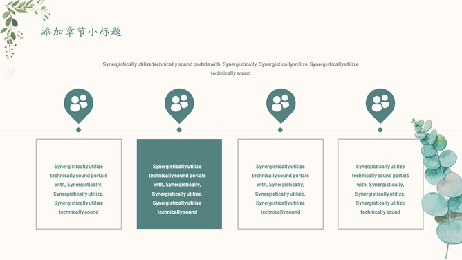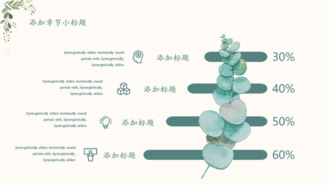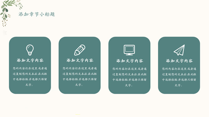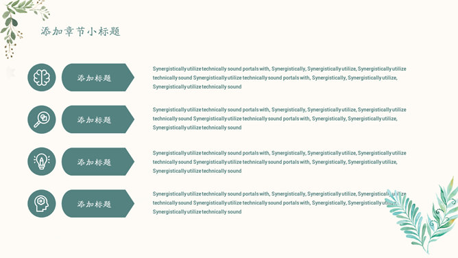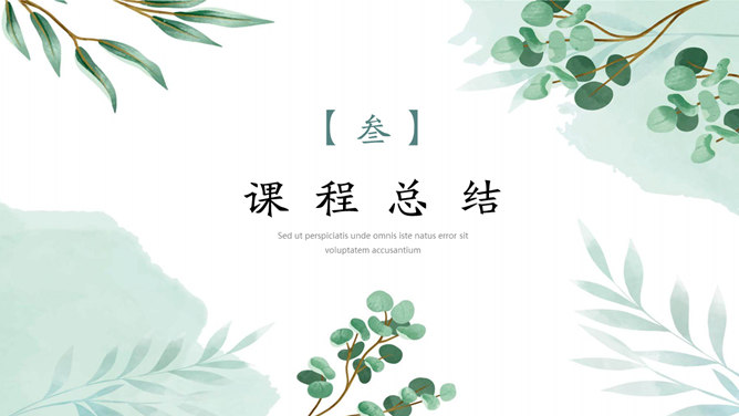 淡雅文艺绿色森系PPT模板。一套精美清新幻灯片模板,绿色水彩叶子装饰,淡雅文艺风格,适合教育教学工作汇报。