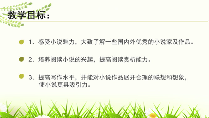 教学目标:感受小说魅力,大致了解一些国内外优秀的小说家及作品。培养阅读小说的兴趣,提高阅读赏析能力。提高写作水平,并能对小说作品展开合理的联想和想象,使小说更具吸引力。所属专题: