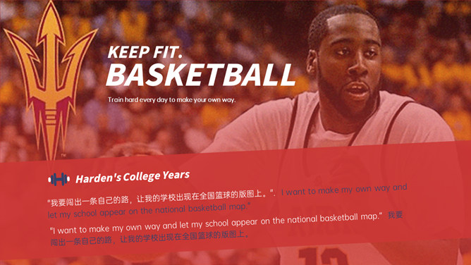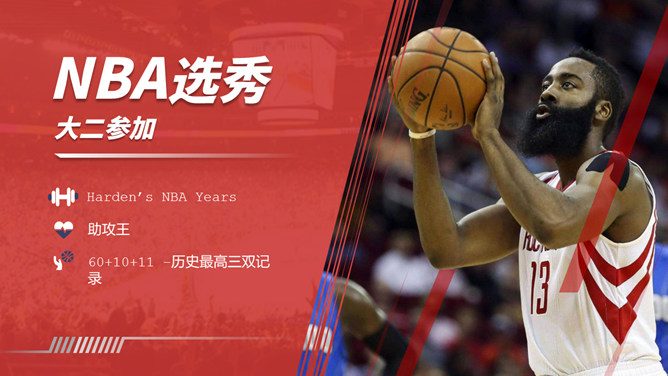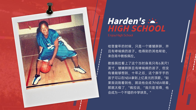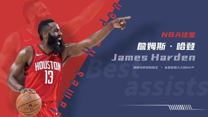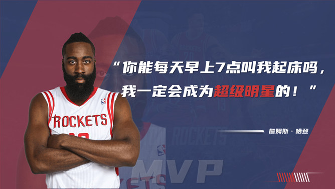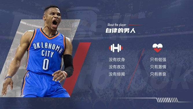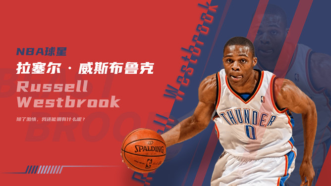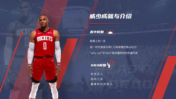 NBA篮球明星介绍PPT模板。一套NBA篮球著名运动员介绍幻灯片模板,时尚红蓝配色,高端大气,设计精美。