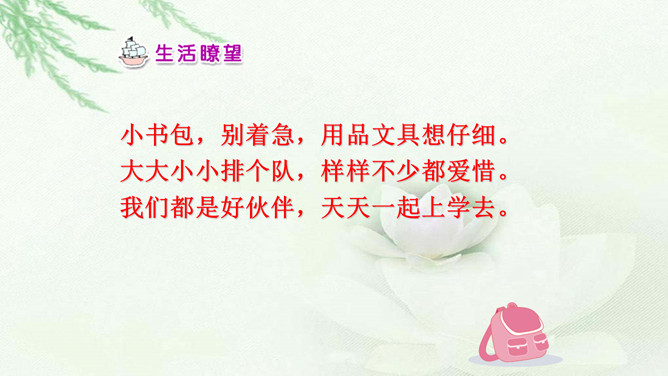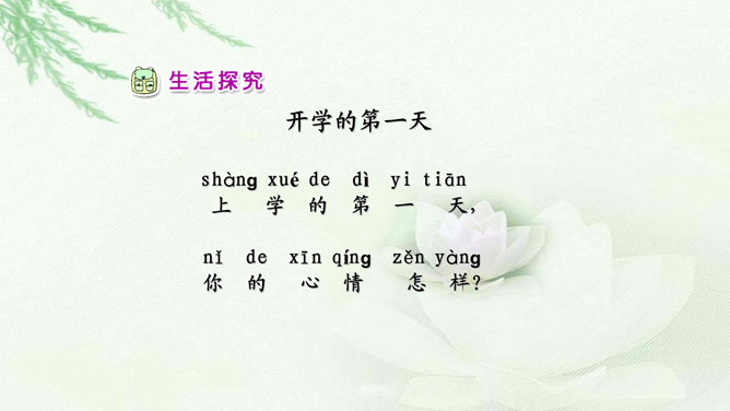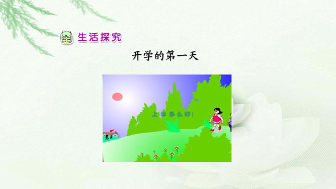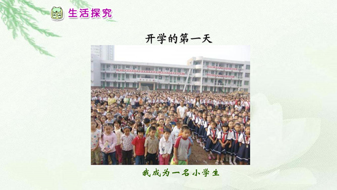 开学的第一天,我成为一名小学生。开学的第一天:上学的第一天,你的心情怎样?生活开始了:小学生的生活和上学前一样吗?我想……他们想到了这些,你想到了什么?小书包,别着急,用品文具想仔细。大大小小排个队,样样不少都爱惜。我们都是好伙伴,天天一起上学去。所属专题:开开心心上学去ppt。