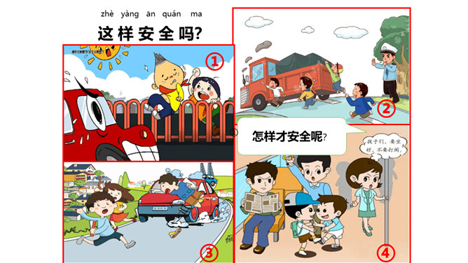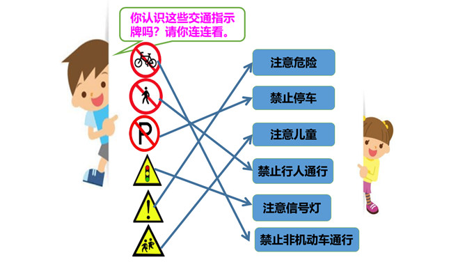 我......来学校,路上经过……。上学路不一样,平平安安进课堂。路上有温暖,我也发现了……你认识这些交通指示牌吗?请你连连看。所属专题: