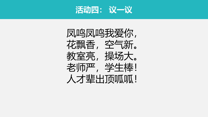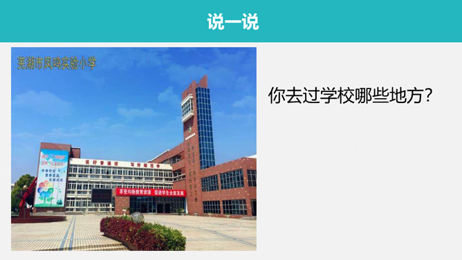 你去过学校哪些地方?刚才你去了哪儿?知道了什么?凤鸣凤鸣我爱你,花飘香,空气新。教室亮,操场大。老师严,学生棒!人才辈出顶呱呱!你喜欢的校园一角。所属专题: