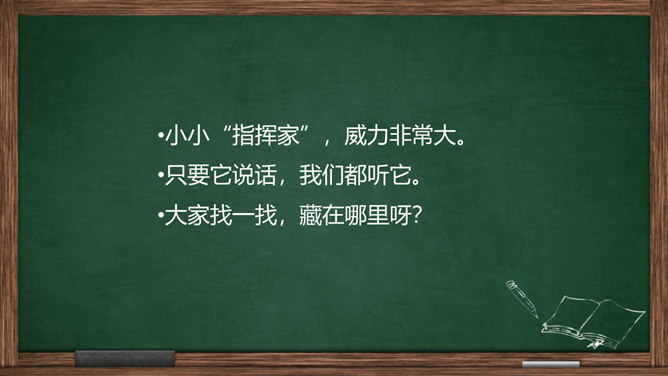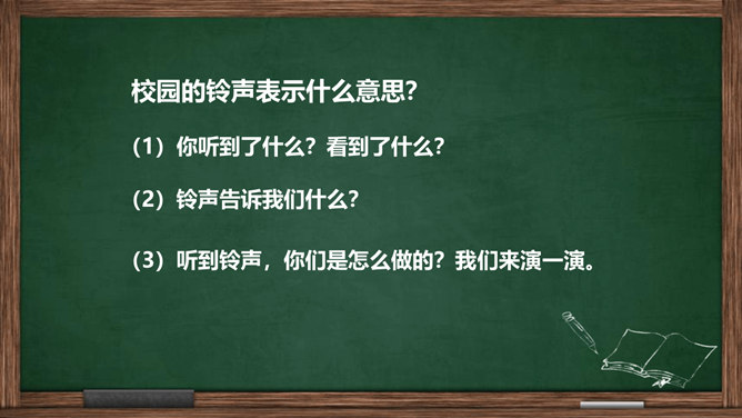 小小“指挥家”,威力非常大。只要它说话,我们都听它。大家找一找,藏在哪里呀?校园的铃声表示什么意思?(1)你听到了什么?看到了什么?(2)铃声告诉我们什么?(3)听到铃声,你们是怎么做的?我们来演一演。想一想:我们为什么要听它的话?上课铃声响,赶快进课堂,书本摆整齐,专心把课上。眼睛仔细看,耳朵注意听,脑子认真想,发言声音亮。国旗国旗真美丽,五个金星照大地,小学生,爱祖国,向着祖国敬个礼。升国旗是一件庄严而又神圣的事情,下面让我们一起学习升旗礼仪吧!所属专题:校园里的号令ppt。