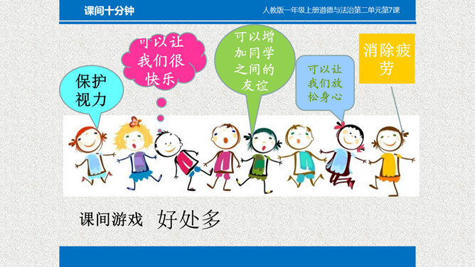 你喜欢什么课间游戏?说一说吧!一个人玩、两个人玩、很多人玩。文明游戏,安全第一。所属专题: