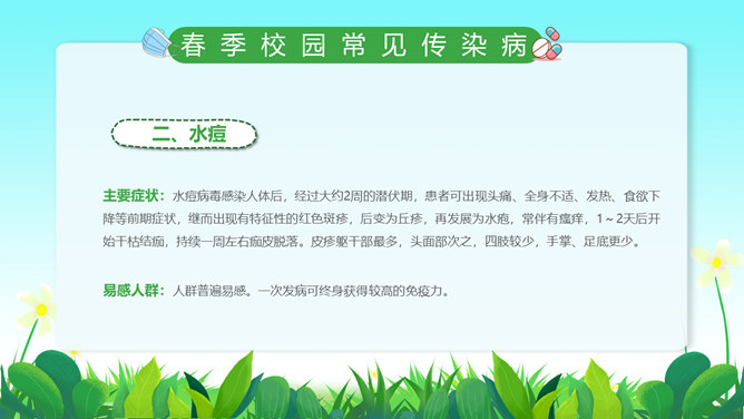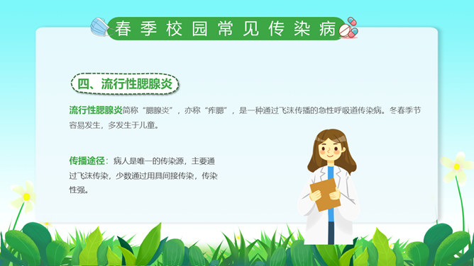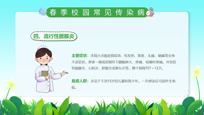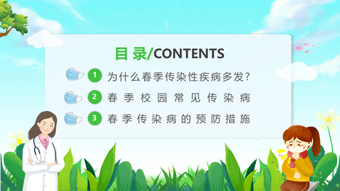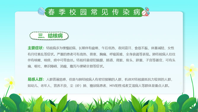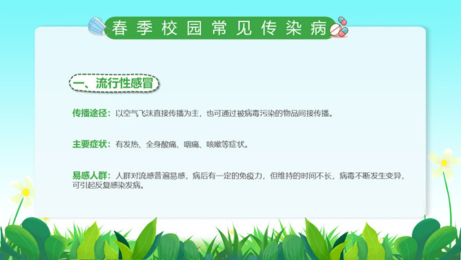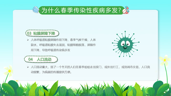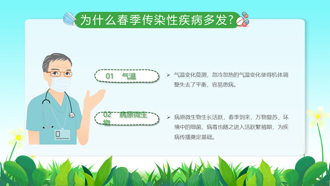 春季校园传染病预防PPT课件。为什么春季传染性疾病多发、春季校园常见传染病、春季传染病的预防措施。