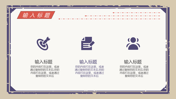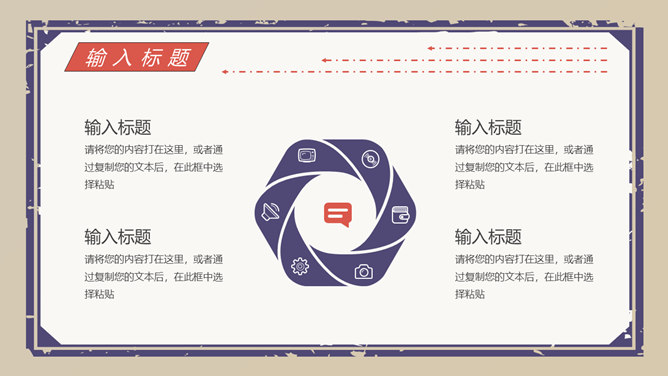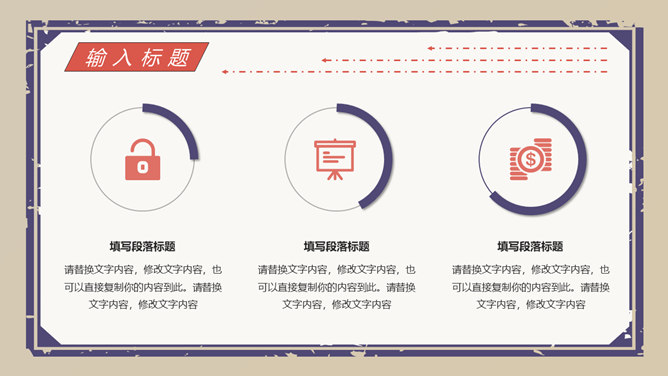 创意复古民国风PPT模板。一套精美创意幻灯片模板,民国风格设计,复古做旧效果,动态播放效果,适合多种主题。