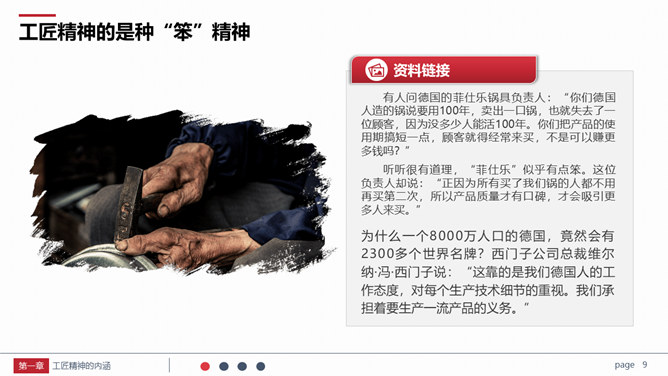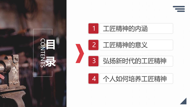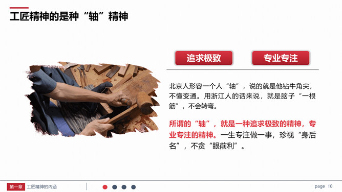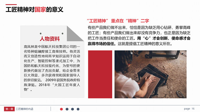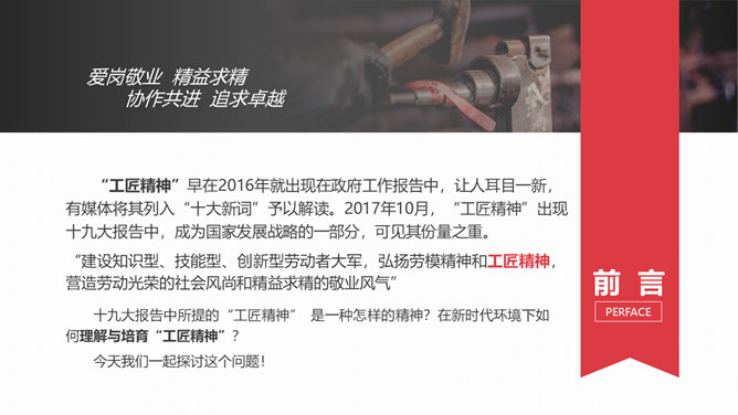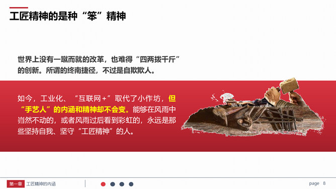 学习弘扬工匠精神PPT模板。包括工匠精神的内涵和意义、弘扬新时代的工匠精神、个人如何培养工匠精神。
