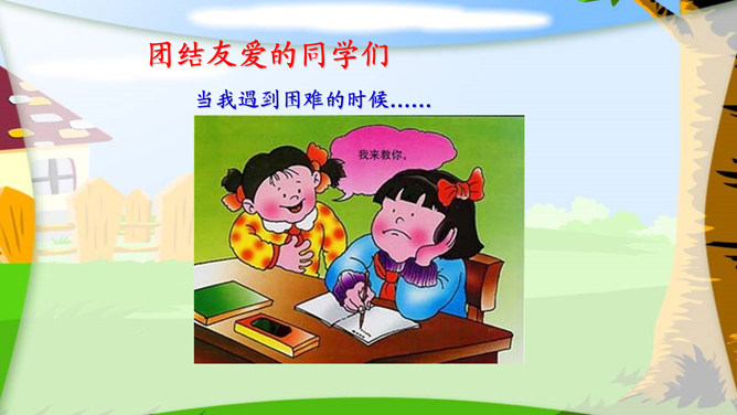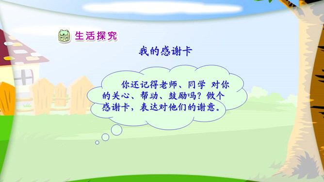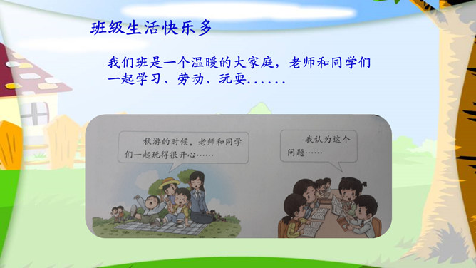 我们班是一个温暖的大家庭,老师和同学们一起学习、劳动、玩耍......当我遇到困难的时候……当我和伙伴有了矛盾的时候……我们班很多同学都成了好朋友。一些有共同兴趣的同学还组成了兴趣小组。我们竭尽全力了,虽然没有得第一名,但也很开心......我们为什么要帮助同学?接受了老师或同学的帮助,自己是什么样的心情?会怎么做?你还记得老师、同学 对你的关心、帮助、鼓励吗?做个感谢卡,表达对他们的谢意。所属专题:我爱我们班ppt。