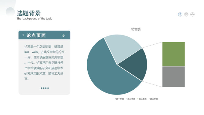 素雅学术风论文答辩PPT模板。一套毕业设计论文答辩幻灯片模板,素雅暗绿色主色调,简约大气,有设计感。