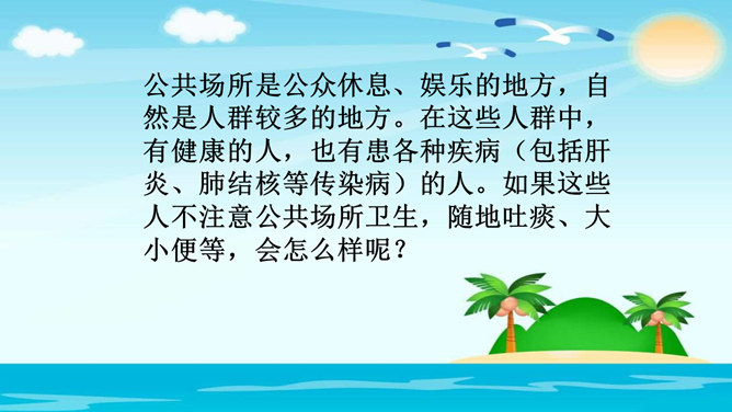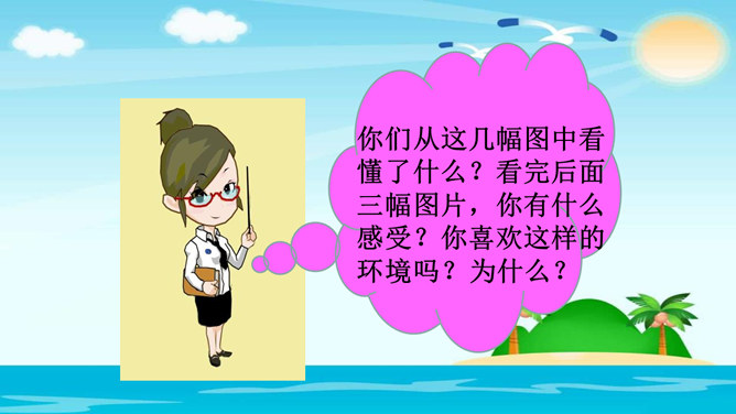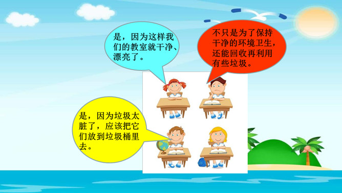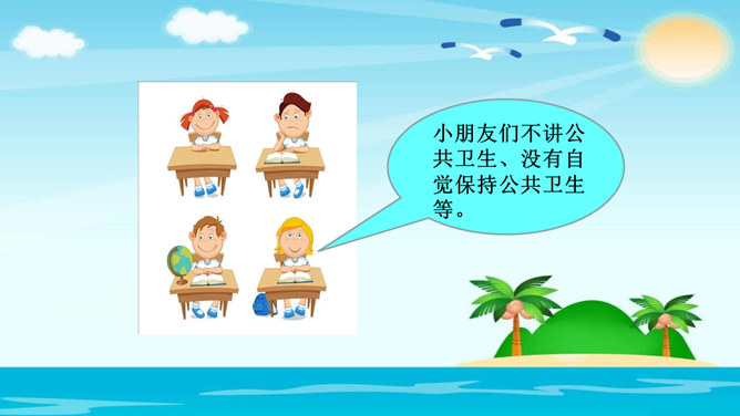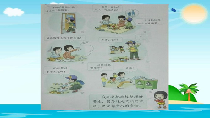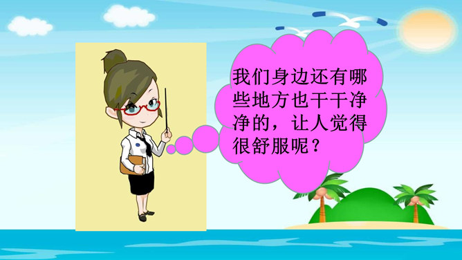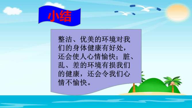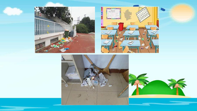 看到这些图片,你们知道为什么会变成这样吗?小朋友们不讲公共卫生、没有自觉保持公共卫生等。你们从这几幅图中看懂了什么?看完后面三幅图片,你有什么感受?你喜欢这样的环境吗?为什么?整洁、优美的环境对我们的身体健康有好处,还会使人心情愉快;脏、乱、差的环境有损我们的健康,还会令我们心情不愉快。我们身边还有哪些地方也干干净净的,让人觉得很舒服呢?同学们,我们每天要求不乱扔垃圾,见到垃圾随手捡起来,是不是为了保持干净的环境卫生呀?所属专题:我们不乱扔ppt。