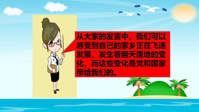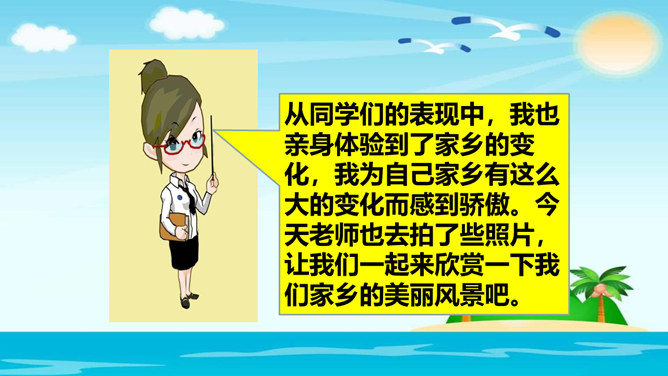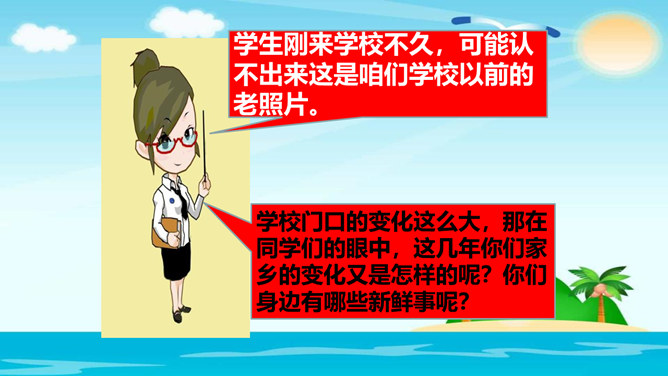孩子们,今天阳光明媚,鸟语花香,在这样的环境中给大家上课,老师忍不住想给你们放两首歌,让我们来听一听吧。这首歌表现的是什么情感呢?你们听出来了吗?第一首歌表达的是南泥湾这个地方的变化是令人欣喜的;第二首歌表达的是对自己家乡的热爱,认为自己的家乡是最好的。可见,家乡是生我、养我的地方,我们都很热爱它。学生刚来学校不久,可能认不出来这是咱们学校以前的老照片。学校门口的变化这么大,那在同学们的眼中,这几年你们家乡的变化又是怎样的呢?你们身边有哪些新鲜事呢?所属专题:家乡新变化ppt。