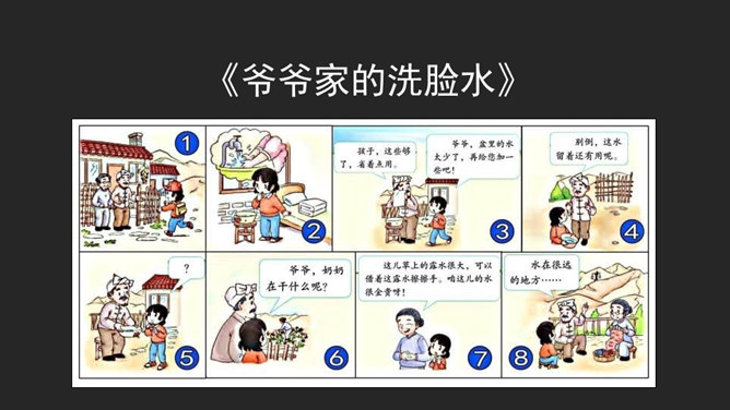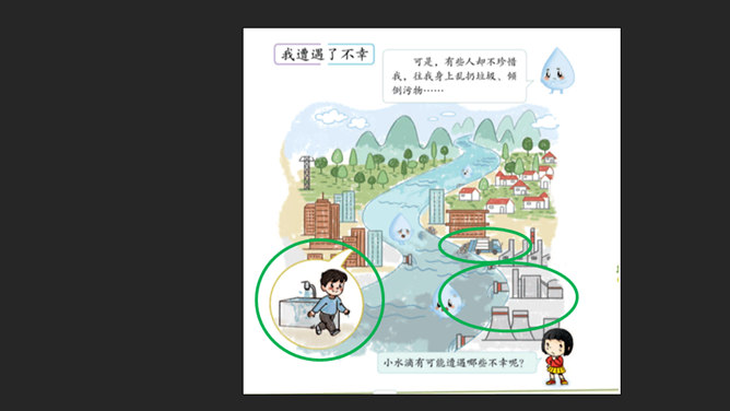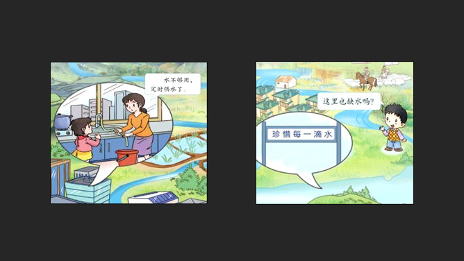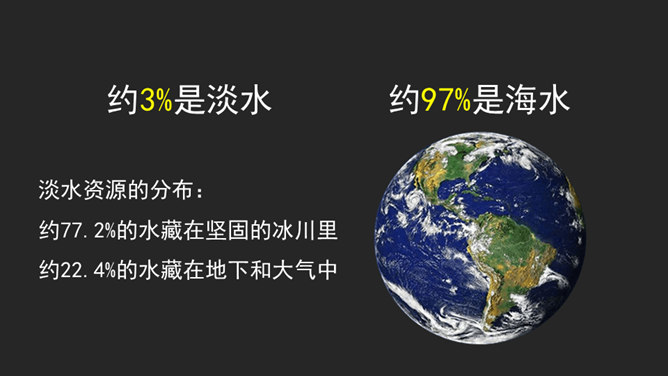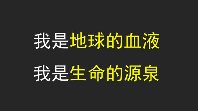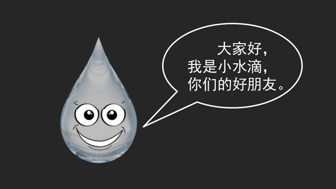 大家好,我是小水滴,你们的好朋友。淡水资源的分布:约3%是淡水,约97%是海水。约77.2%的水藏在坚固的冰川里,约22.4%的水藏在地下和大气中。注意自己行为 不去破坏浪费。看到错误行为 及时提示制止。节水护水行为 积极学习推广。你还有什么节约用水的好办法呢?或者见到过哪些节水小标语呢?请你用文字或图画记录下来吧!我们大家共同携手,保护珍贵的水资源。所属专题:小水滴的诉说ppt。