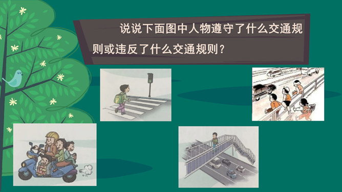 知识与能力目标:了解生活中的危险行为,并形成主动规避安全风险的意识和能力。过程与方法目标:通过课本知识及相关案例帮助学生树立更完善的安全意识。情感态度价值观目标:认识到生活中的危险是可以积极行动去避免的,培养安全意识和珍爱生命的观念。通常上学和放学时是一天中交通相对拥挤的时候。我们怎样才能高高兴兴出门,平平安安回家呢?说说下面图中人物遵守了什么交通规则或违反了什么交通规则?小组讨论:你知道溺水的原因以及怎样预防溺水吗?所属专题:安全记心上ppt。