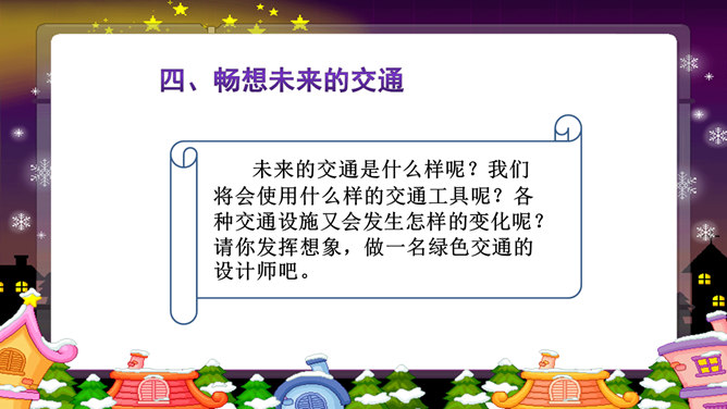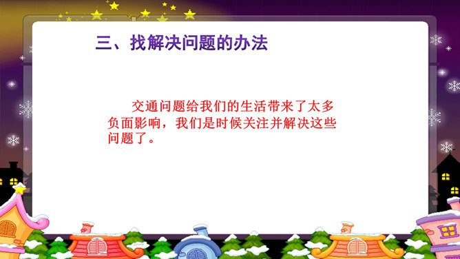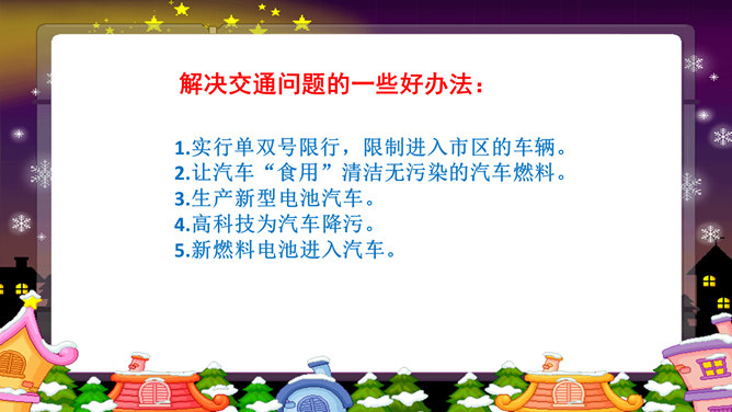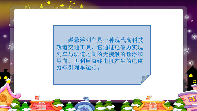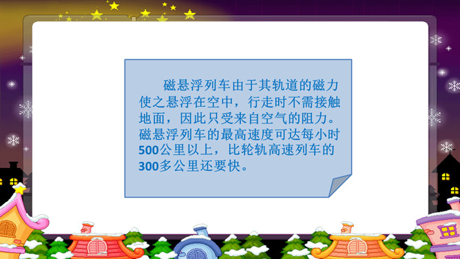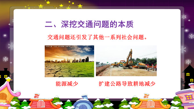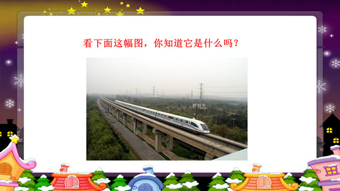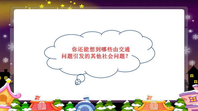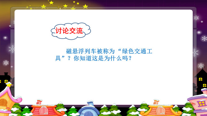 以上这些图片反映了现实中的哪些交通问题?对你的日常生活有没有影响?交通问题还引发了其他一系列社会问题。你还能想到哪些由交通问题引发的其他社会问题?交通问题给我们的生活带来了太多负面影响,我们是时候关注并解决这些问题了。磁悬浮列车被称为 “绿色交通工具”?你知道这是为什么吗?磁悬浮列车是一种现代高科技轨道交通工具,它通过电磁力实现列车与轨道之间的无接触的悬浮和导向,再利用直线电机产生的电磁力牵引列车运行。作为小学生的我们,可以为解决交通问题做哪些努力?所属专题:慧眼看交通ppt。