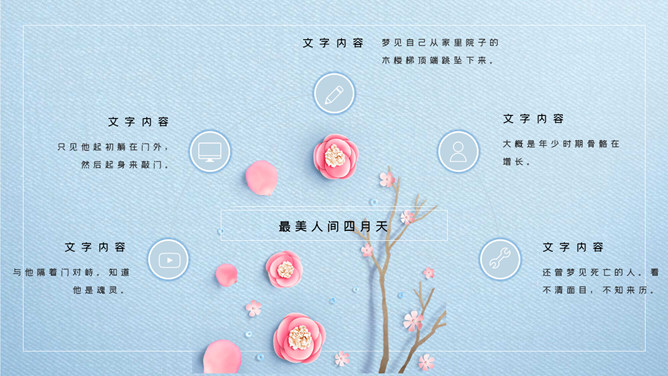 清新唯美蓝粉花朵PPT模板