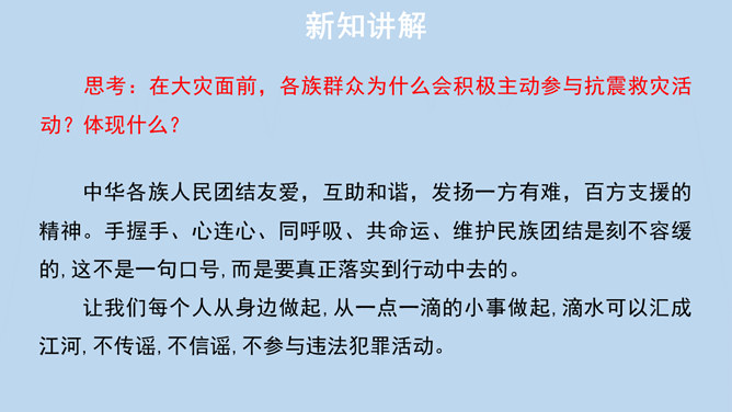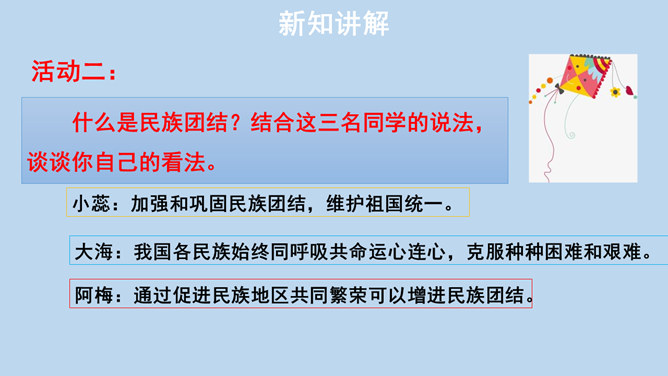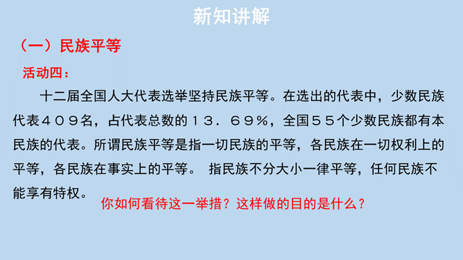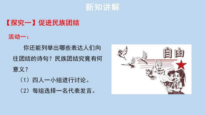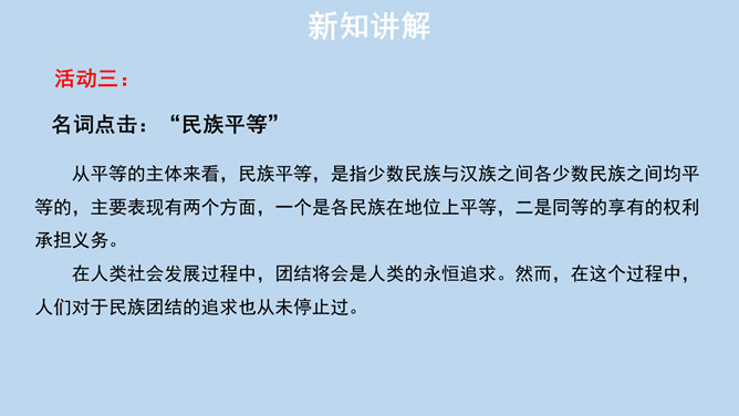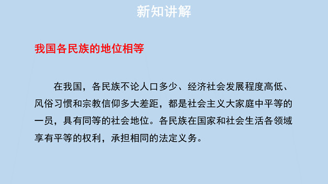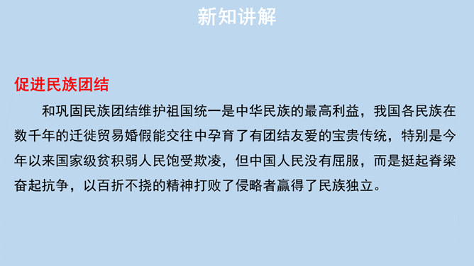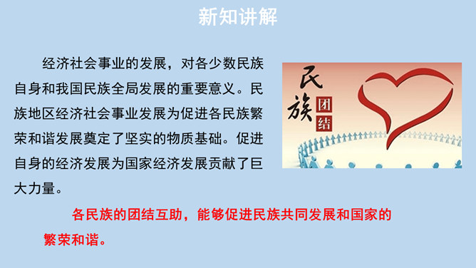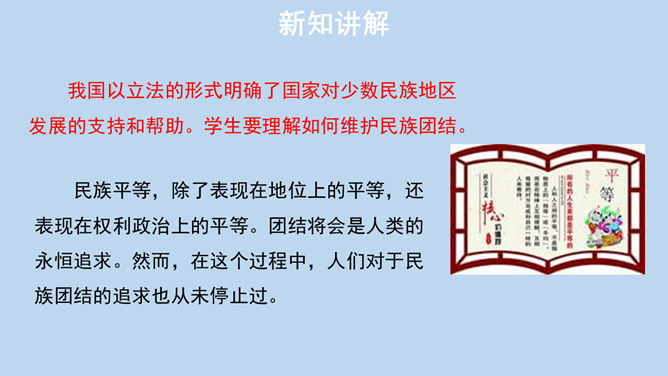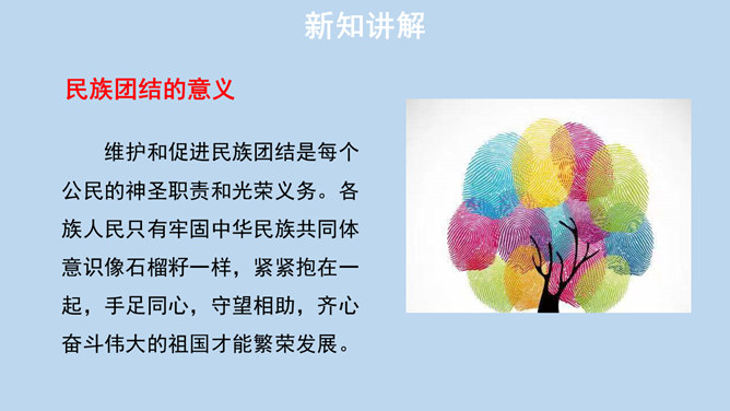 维护和促进民族团结是每个公民的神圣职责和光荣义务。各族人民只有牢固中华民族共同体意识像石榴籽一样,紧紧抱在一起,手足同心,守望相助,齐心奋斗伟大的祖国才能繁荣发展。从平等的主体来看,民族平等,是指少数民族与汉族之间各少数民族之间均平等的,主要表现有两个方面,一个是各民族在地位上平等,二是同等的享有的权利承担义务。在人类社会发展过程中,团结将会是人类的永恒追求。然而,在这个过程中,人们对于民族团结的追求也从未停止过。和巩固民族团结维护祖国统一是中华民族的最高利益。所属专题:中华民族一家亲ppt。