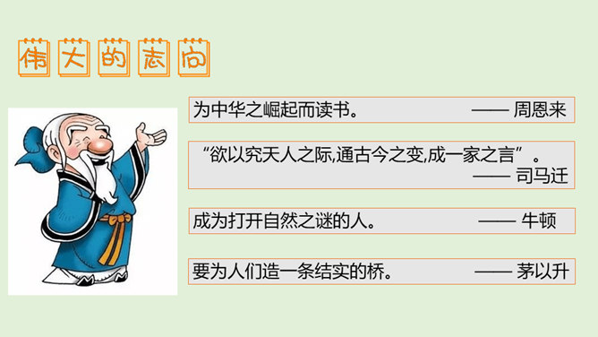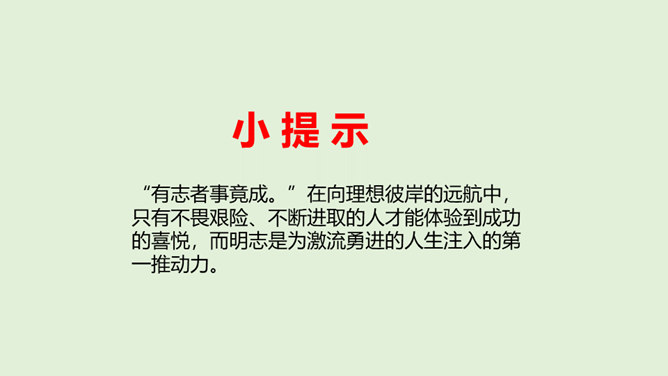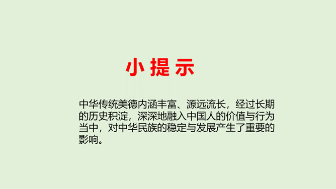 中华传统美德内涵丰富、源远流长,经过长期的历史积淀,深深地融入中国人的价值与行为当中,对中华民族的稳定与发展产生了重要的影响。“有志者事竟成。”在向理想彼岸的远航中,只有不畏艰险、不断进取的人才能体验到成功的喜悦,而明志是为激流勇进的人生注入的第一推动力。你觉得诚信对于社会和个人发展有怎样的重要作用?不诚信会带来怎样的危害呢?你能举例说明吗?你是一个诚信的人吗?我们要怎样做到诚信?诚信既是一个人的立身之本,也是一个民族、国家的生存之基。“失信不立”是亘古不变的人生哲理。所属专题:传统美德源远流长ppt。