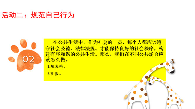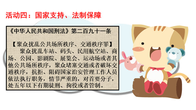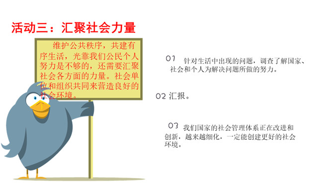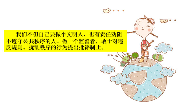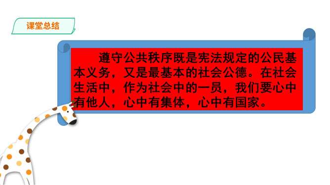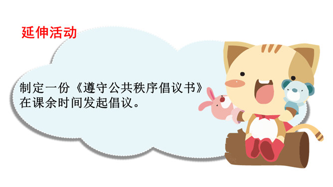 如果你遇到类似的现象,你会采取什么态度?不同的态度会带来哪些结果?我们不但自己要做个文明人,也有责任劝阻不遵守公共秩序的人。做一个监督者,敢于对违反规则、扰乱秩序的行为提出批评制止。在公共生活中,作为社会的一员,每个人都应该遵守社会公德、法律法规、才能保持良好的社会秩序,构建有序和谐的公共生活。那么,我们在不同公共场合应该怎么做。维护公共秩序,共建有序生活,光靠我们公民个人努力是不够的,还需要汇聚社会各方面的力量。社会单位和组织共同来营造良好的社会环境。所属专题:建立良好的公共秩序ppt。