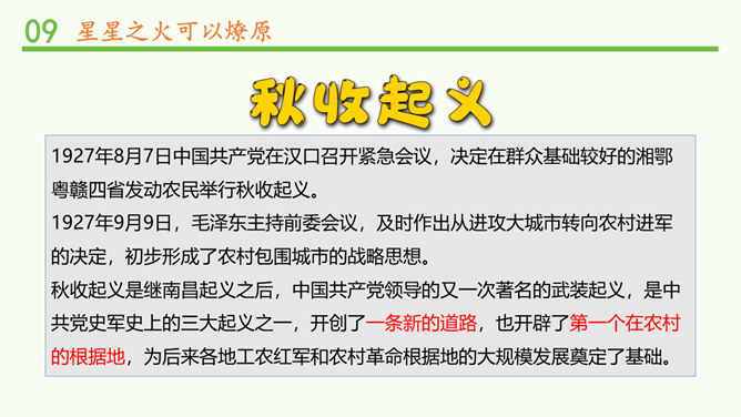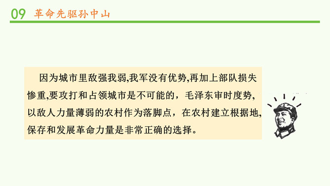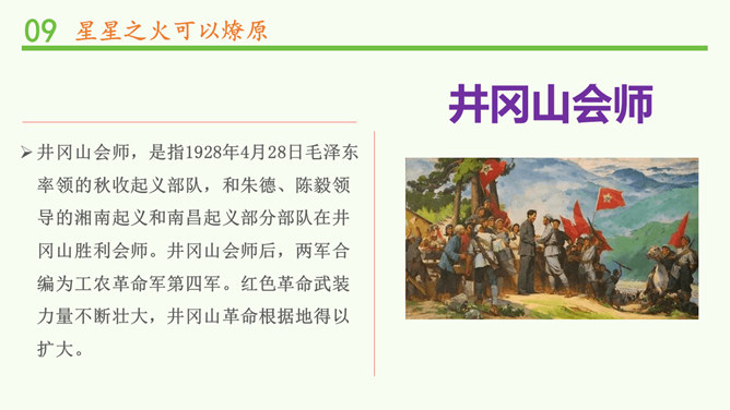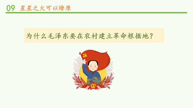 为什么毛泽东要在农村建立革命根据地?因为城市里敌强我弱,我军没有优势,再加上部队损失惨重,要攻打和占领城市是不可能的,毛泽东审时度势,以敌人力量薄弱的农村作为落脚点,在农村建立根据地,保存和发展革命力量是非常正确的选择。井冈山革命力量的壮大,对敌人构成了极大的威胁。为此,国民党开始对井冈山进行多次“进剿”和“会剿”,实行严密的经济封锁。当时,在井冈山上,由于敌人的封锁,生活越来越难,部队所用的粮米油盐、服装弹药日见短缺。所属专题:中国有了共产党ppt。