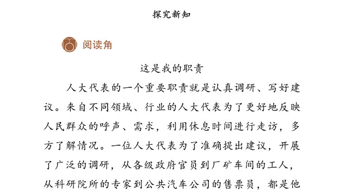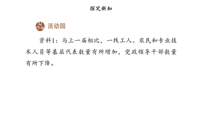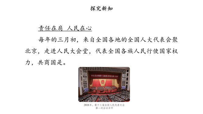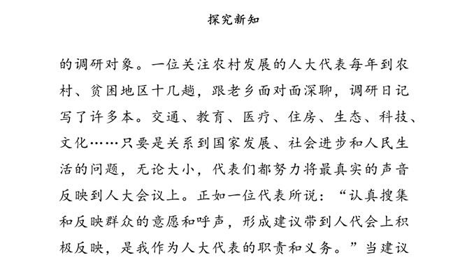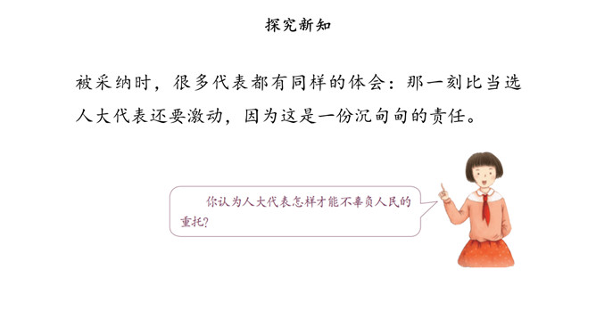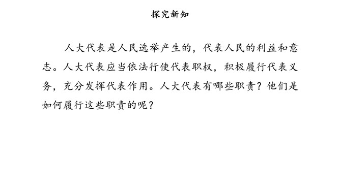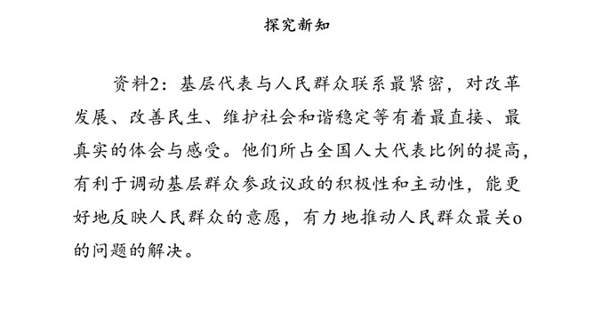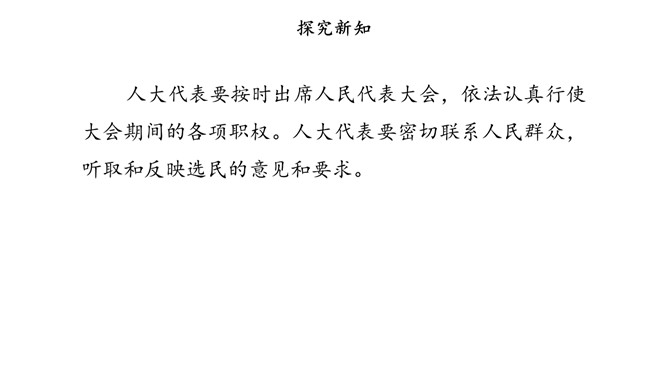 每年的三月初,来自全国各地的全国人大代表会聚北京,走进人民大会堂,代表全国各族人民行使国家权力,共商国是。基层代表与人民群众联系最紧密,对改革发展、改善民生、维护社会和谐稳定等有着最直接、最真实的体会与感受。他们所占全国人大代表比例的提高,有利于调动基层群众参政议政的积极性和主动性,能更好地反映人民群众的意愿,有力地推动人民群众最关心的问题的解决。人大代表是人民选举产生的,代表人民的利益和意志。人大代表应当依法行使代表职权,积极履行代表义务,充分发挥代表作用。所属专题:人大代表为人民ppt。