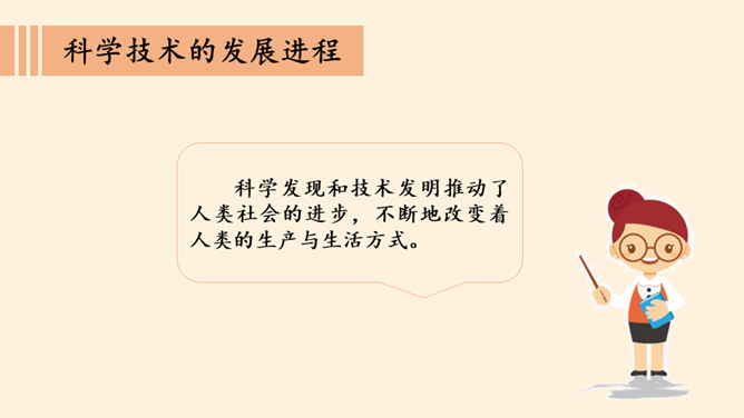 科学发现和技术发明推动了人类社会的进步,不断地改变着人类的生产与生活方式。人类的科学发明与创造标志着社会的文明和进步。合作探究:蒸汽机发明后得到了广泛的应用。请结合以下材料,说说科学发明与应用是如何推动社会发展的。当前,信息技术的发展大大改变了人们的生活、学习和工作方式,互联网技术为我们创造了发布信息、阅读新闻报道、娱乐、交流的新平台。近年来,我国大力实施创新驱动发展战略,取得了丰硕的成果,天宫、蛟龙、天眼、悟空、墨子、大飞机等重大科技成果相继问世。所属专题:科技发展造福人类ppt。