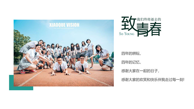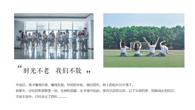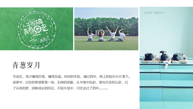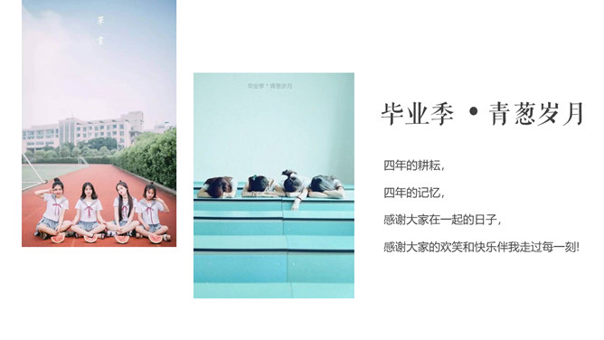 青春纪念毕业相册PPT模板。一套唯美小清新相册幻灯片模板,适合大学生毕业留念、青春纪念等相关用途。