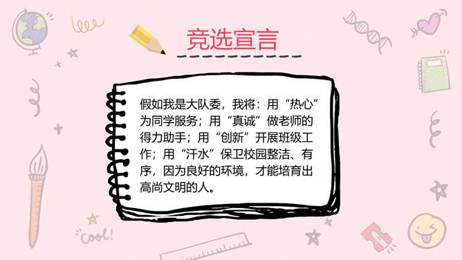 卡通班干部大队委员竞选PPT模板