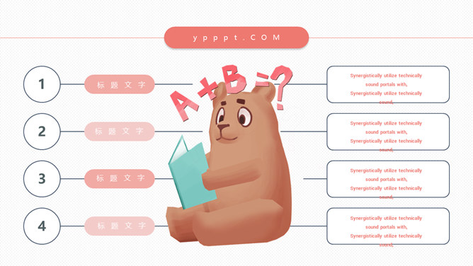 卡通小熊儿童读书分享PPT模板。一套清新卡通设计幻灯片模板,可爱小熊主题,适合小学儿童读书分享主题。