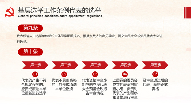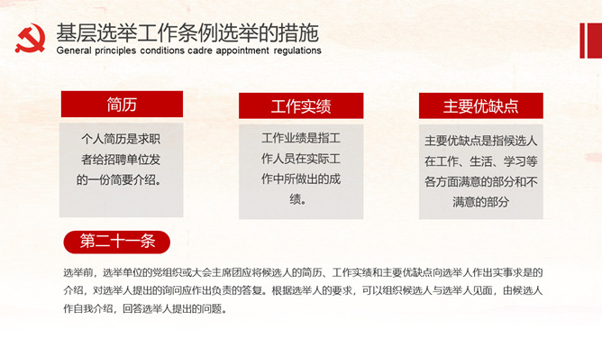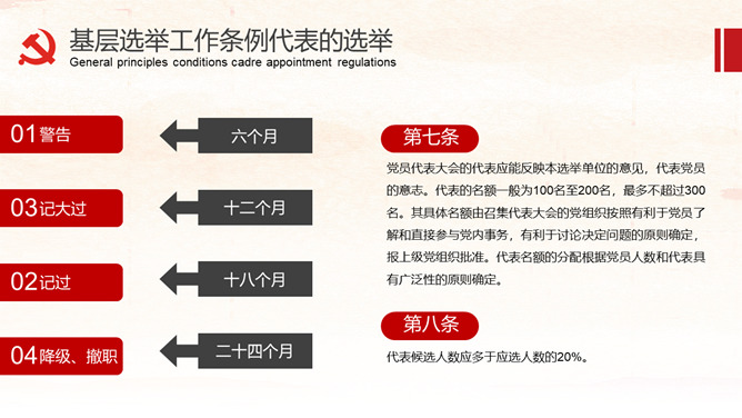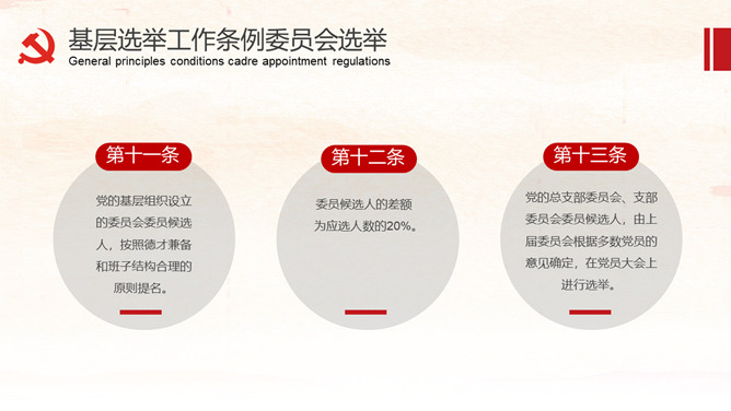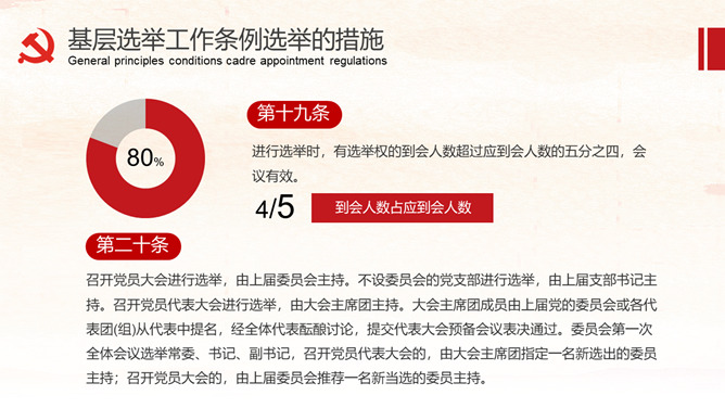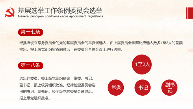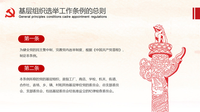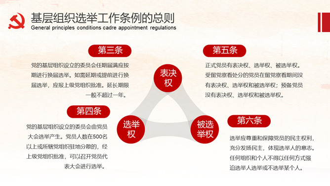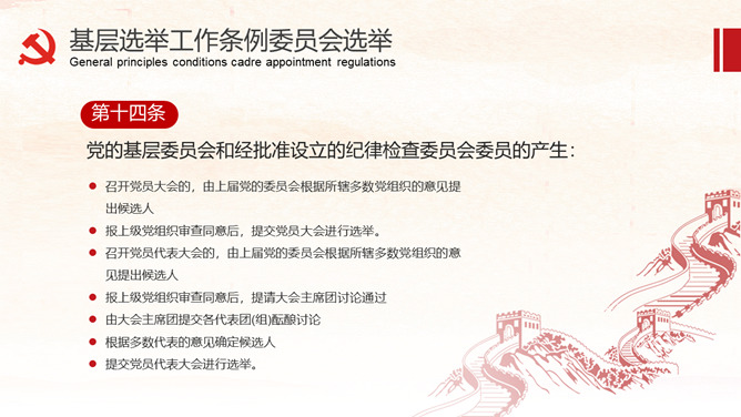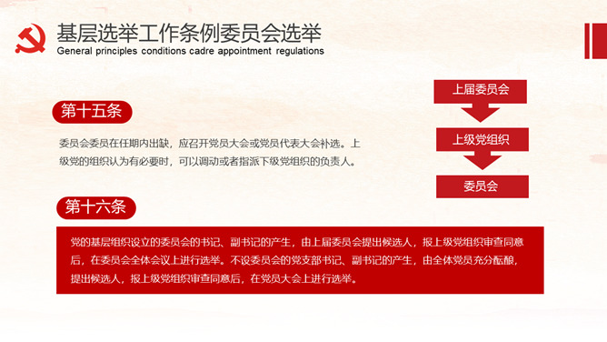 《中国共产党基层组织选举工作条例》的详细解读。包括基层组织选举工作条例的总则、代表的选举、委员会选举、选举的措施、监督与处罚、附则等内容。
