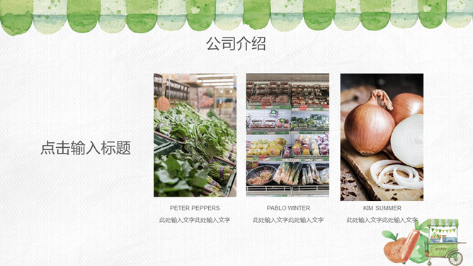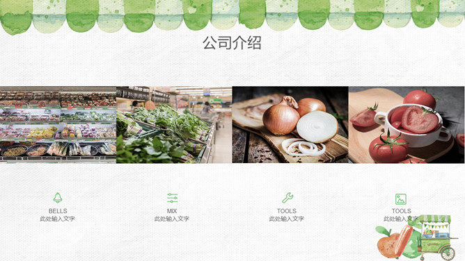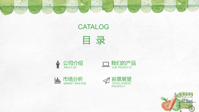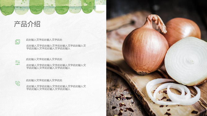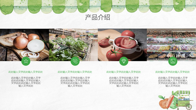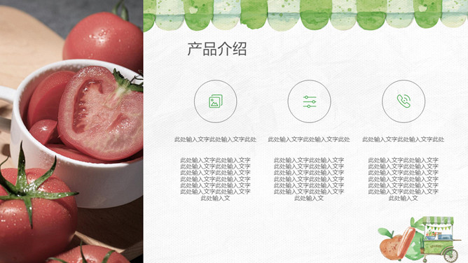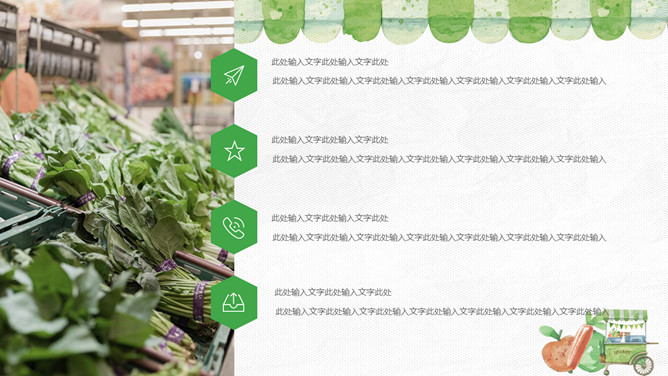 健康绿色食品产品介绍PPT模板。一套无公害绿色食品产品介绍幻灯片模板,也可用于健康饮食、食品安全相关主题。