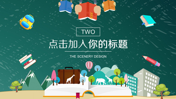幼儿园小学教育教师说课PPT模板。一套教师说课课件幻灯片模板,黑板绿色背景,书籍书本铅笔等元素装饰。