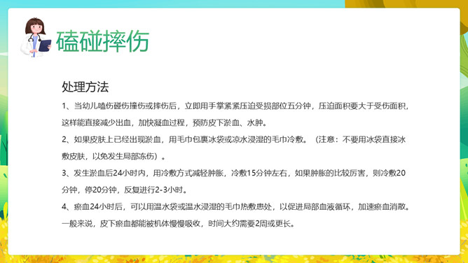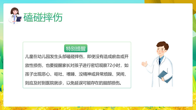 幼儿园教师急救知识培训PPT模板。周密的防控是预防意外伤害的关键,但当意外事故来临,如何妥善处理意外伤害事故,才能最大程度的降低意外事故带来的危害呢?本文为您讲解!