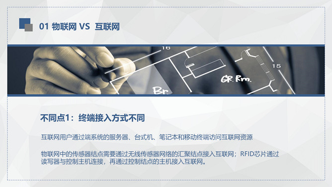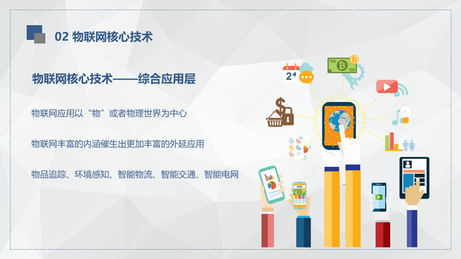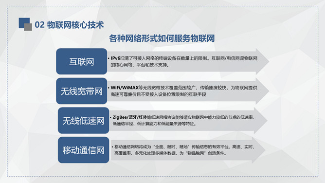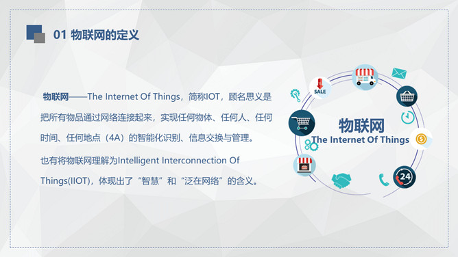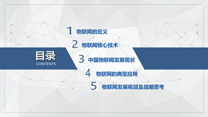 物联网知识介绍培训PPT模板。目录:物联网的定义、物联网核心技术、中国物联网发展现状、物联网的典型应用、物联网发展瓶颈及战略思考。
