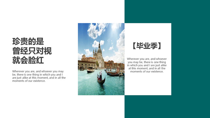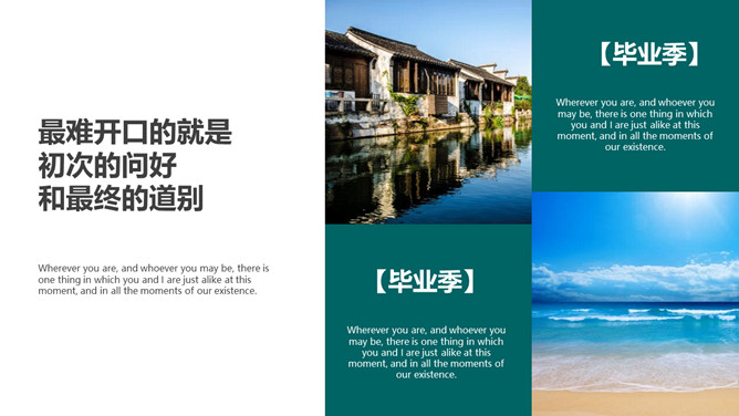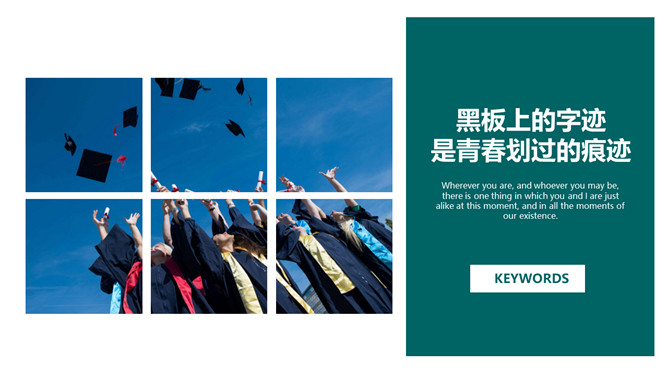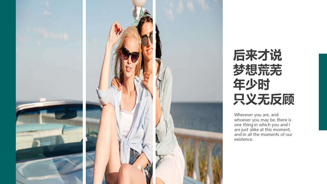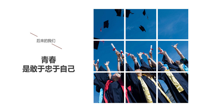 青春毕业旅行相册PPT模板。一套毕业旅行相册幻灯片模板,多种图片排版方式,用于美好的一去不回的青春。