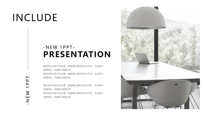 家装家居设计展示PPT模板。一套室内家居设计方案展示幻灯片模板,时尚潮流简约设计,多种图片排版。