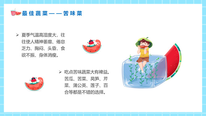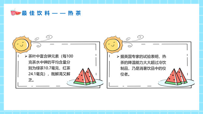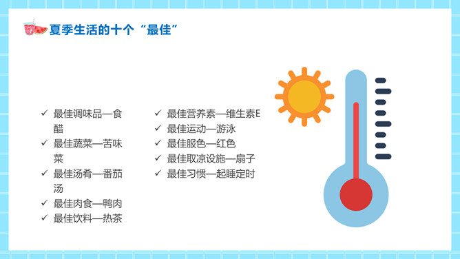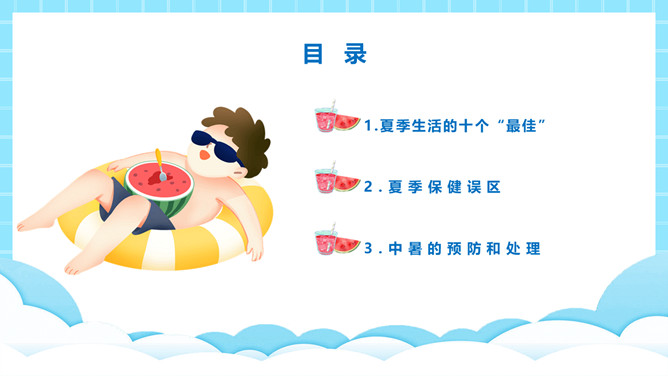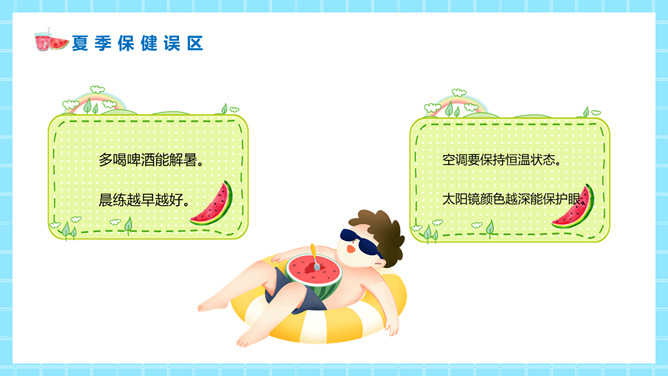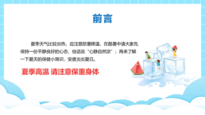 如何预防夏天中暑PPT模板。夏季天气比较炎热,应注意防暑降温,在酷暑中请大家先保持一份平静良好的心态,俗话说“心静自然凉”;再来了解一下夏天的保健小常识,安度炎炎夏日。