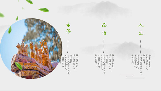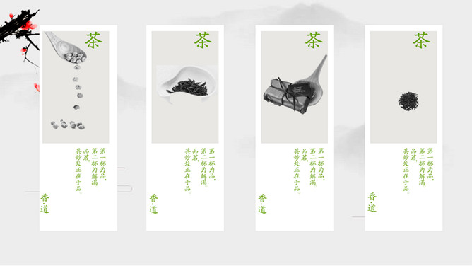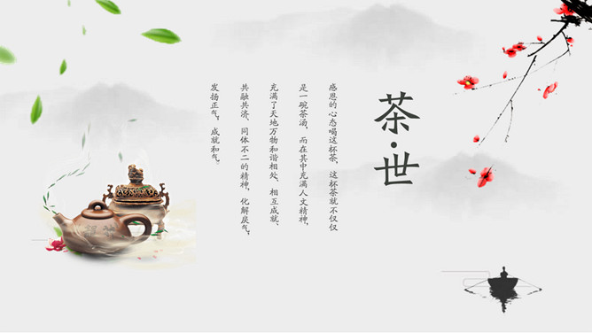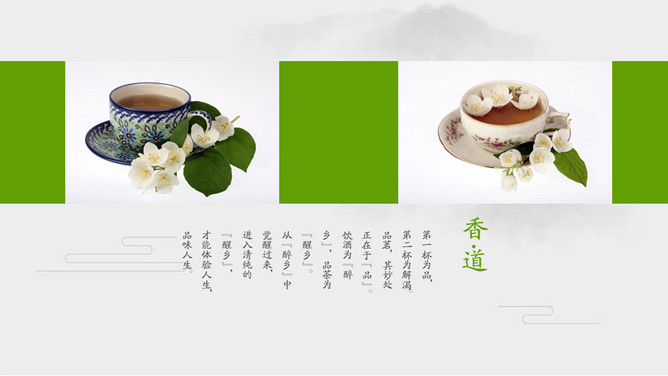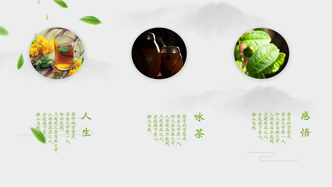 雅致清新茶艺茶文化PPT模板。一套茶叶茶艺茶道茶文化主题幻灯片模板,简约设计,清新雅致风格。