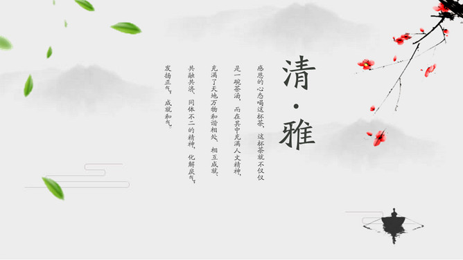 淡雅远山禅意中国风PPT模板