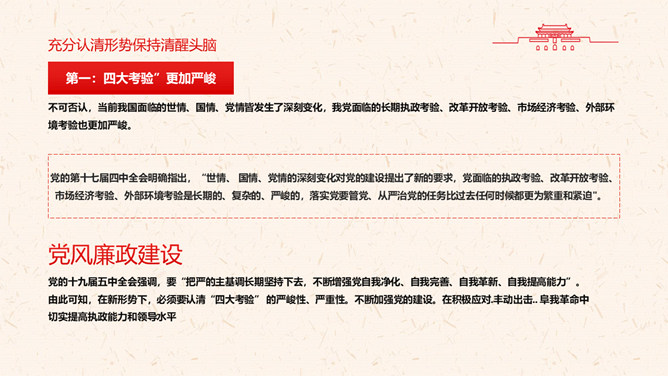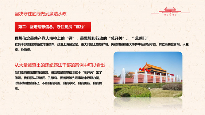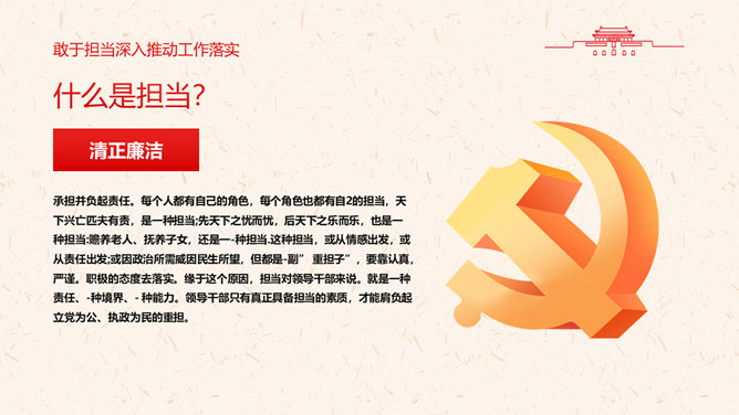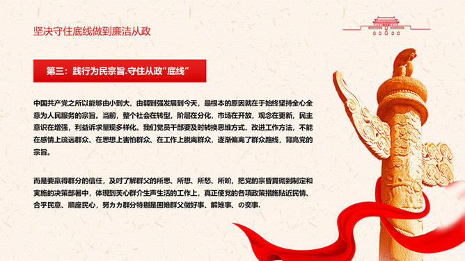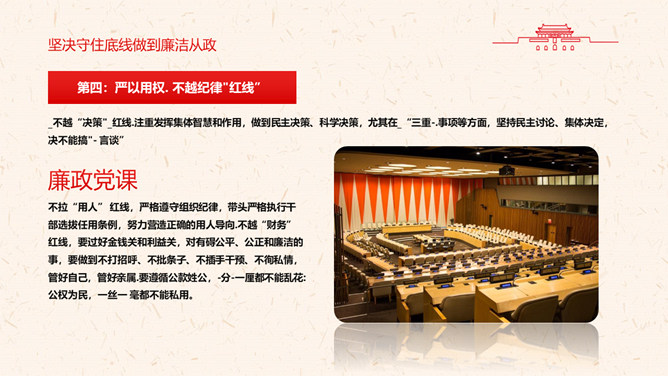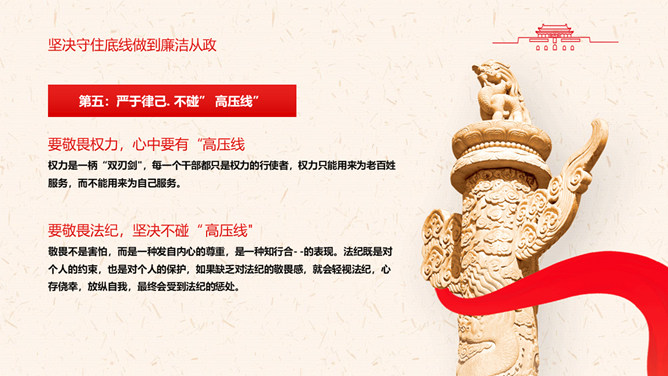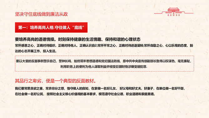 守好“五条线”做到“四担当”PPT模板。充分认清形势,保持清醒头脑。坚决守住底线,做到廉洁从政。敢于担当,深入推动工作落实。