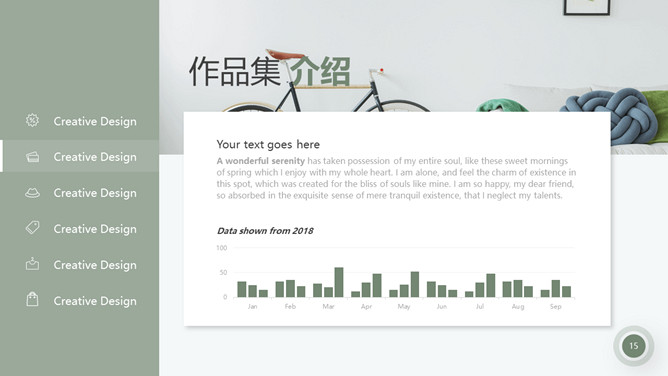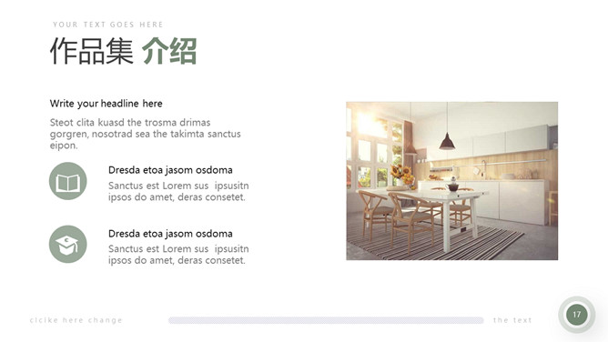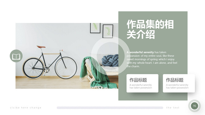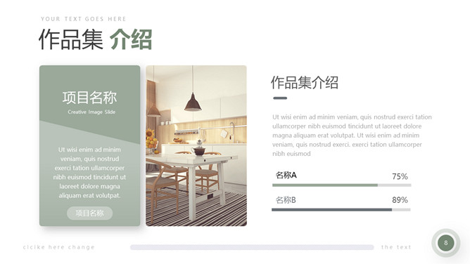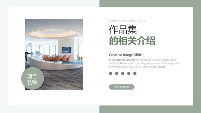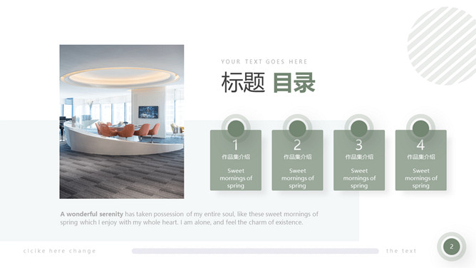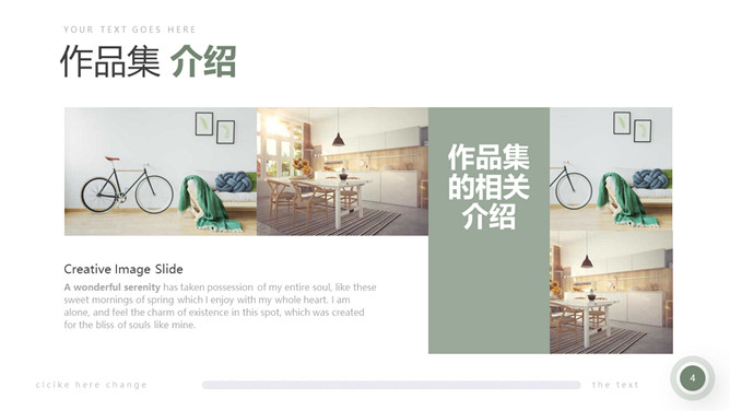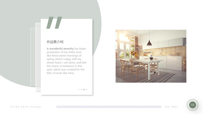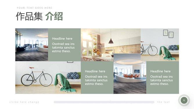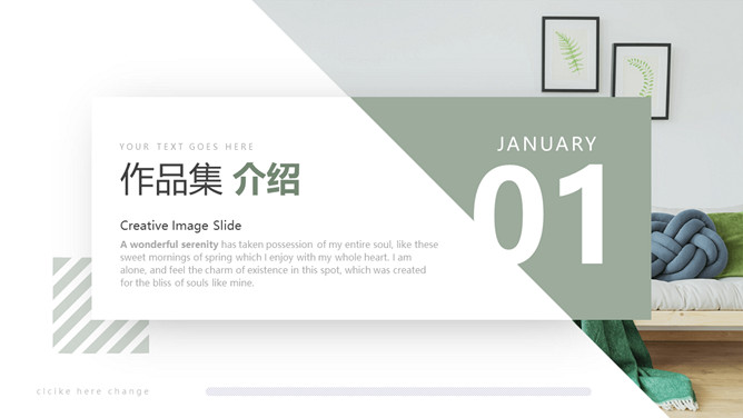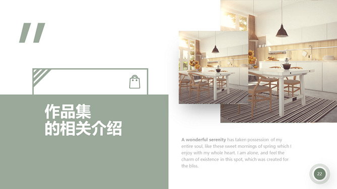 室内装修设计方案PPT模板。一套简约北欧风室内家居设计方案展示幻灯片模板,清新莫兰迪绿色色调。