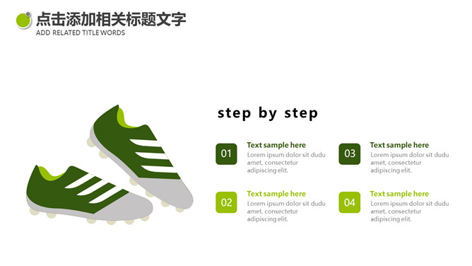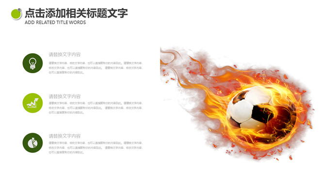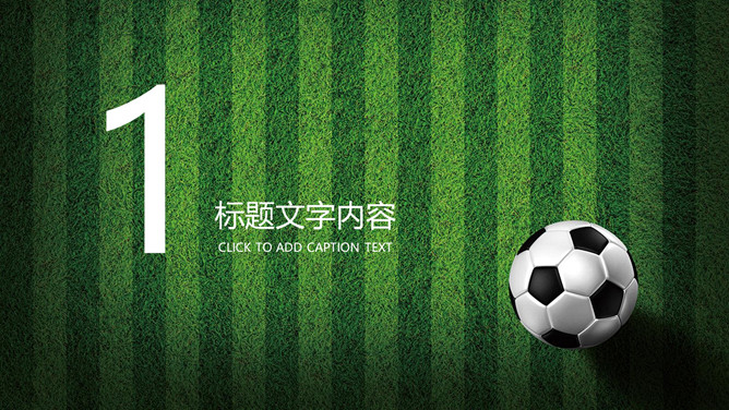 体育课足球教学课件PPT模板。一套体育课足球教学幻灯片课件模板,绿色草地和足球背景,简约设计。