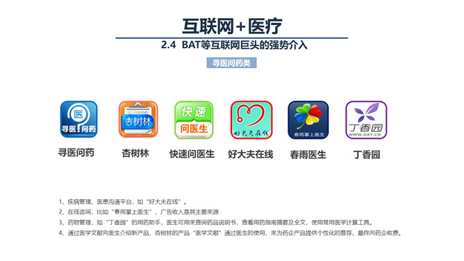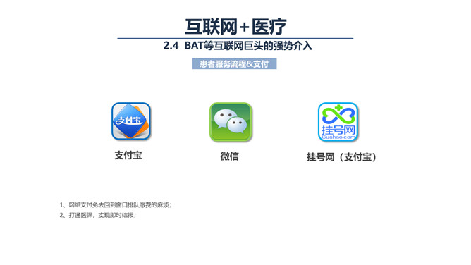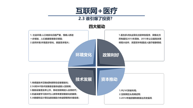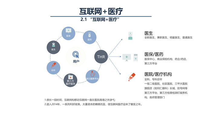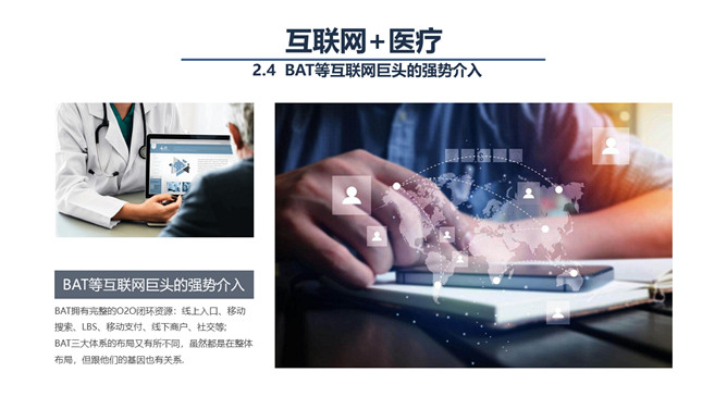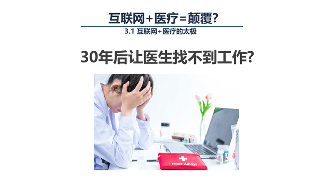 互联网+与智慧医疗PPT模板。联网医疗能提供的可能性也是极为诱人的,我们可能可以借由这个工具,记录自己生命历程的所有健康数据,这些数据将揭示规律、创造价值,我们可以在医生和技术的指导下,对自己的健康进行全程的、持续的管理,不用等到生了病才去医院。