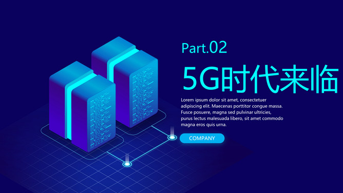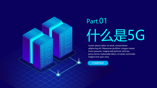 5G网络时代简介PPT模板。一套对5G移动网络进行介绍幻灯片模板,包括什么是5G、5G时代已经来临、5G未来展望。