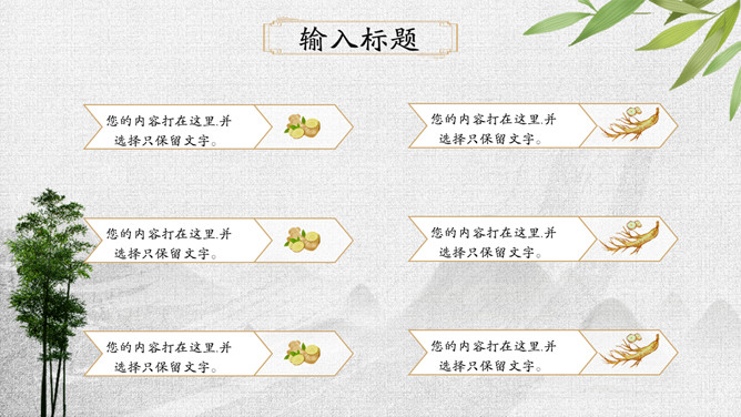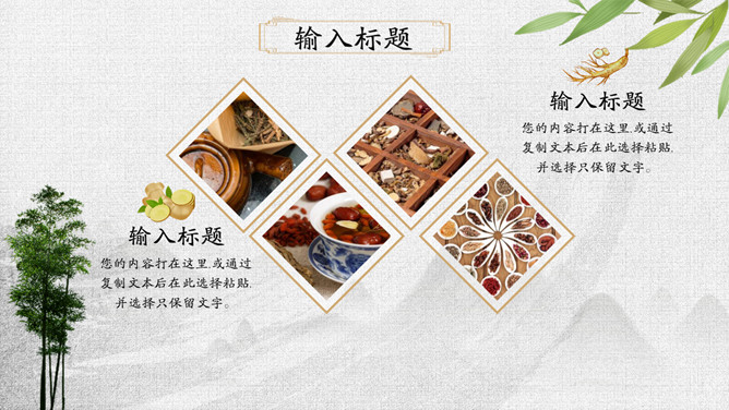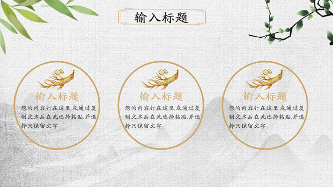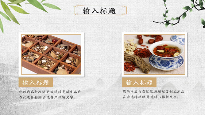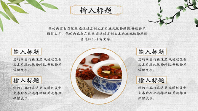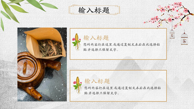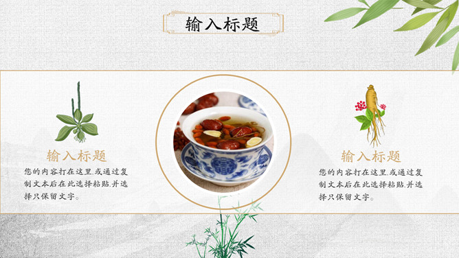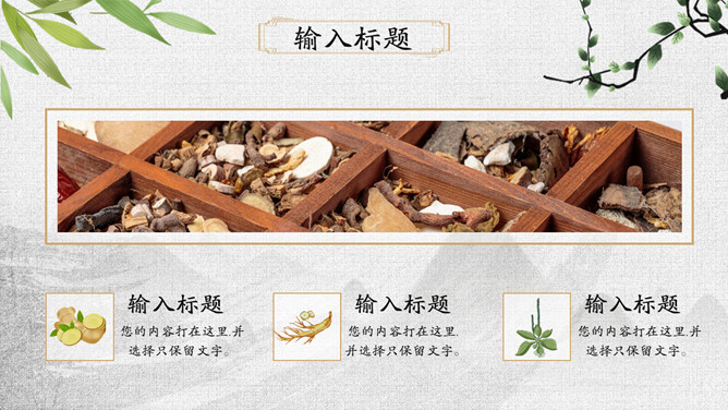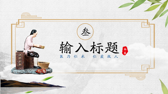 传统文化中医中药养生PPT模板。一套中医中药幻灯片模板,可用于介绍中药药性用途、中医诊治、养生保养等。