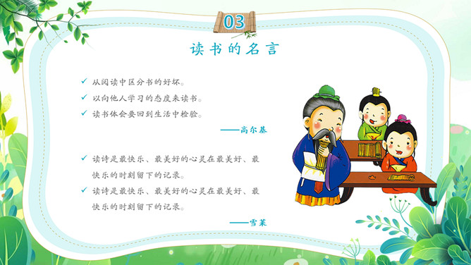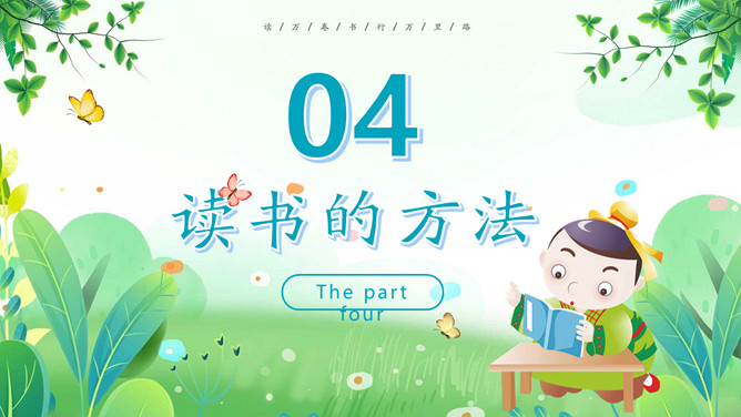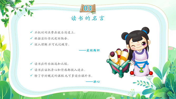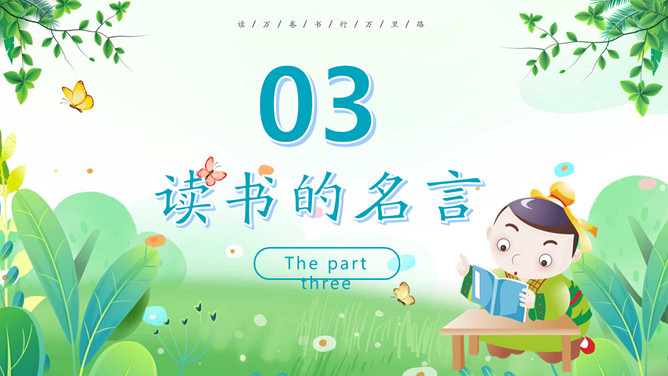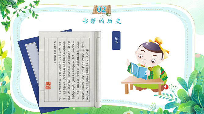 卡通古风世界读书日PPT模板。一套世界读书日主题幻灯片模板,可爱卡通古风设计,介绍了书籍的历史、读书的名言和读书的方法等内容。