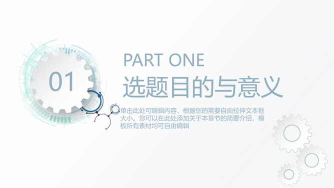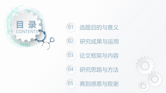 机械工程专业论文答辩PPT模板。以齿轮为背景,适合机械工程及相关专业毕业论文答辩、学术汇报的幻灯片模板。