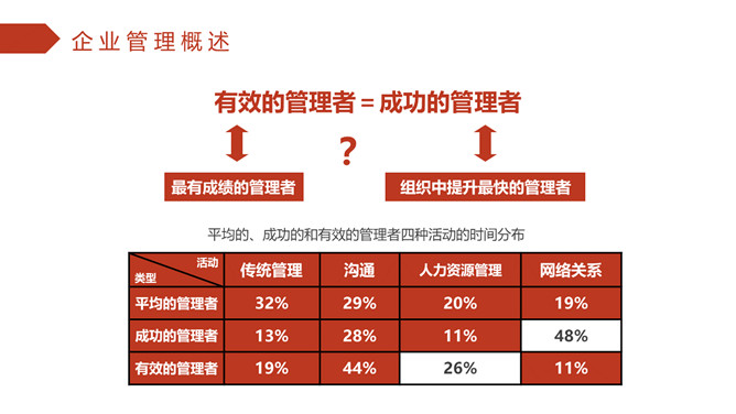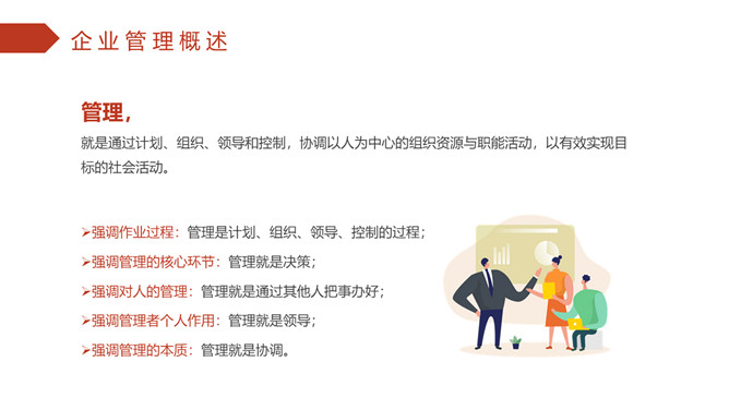企业管理培训PPT课件模板。管理,就是通过计划、组织、领导和控制,协调以人为中心的组织资源与职能活动,以有效实现目标的社会活动。