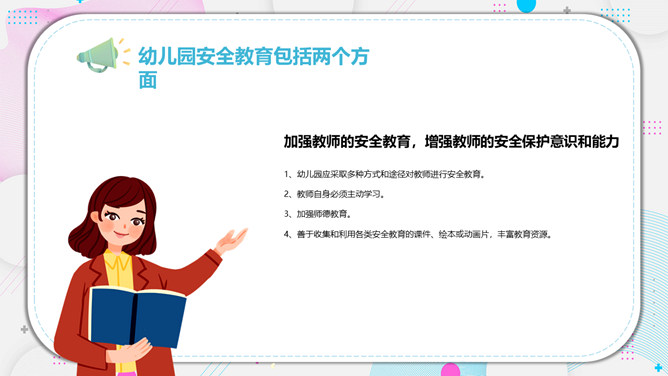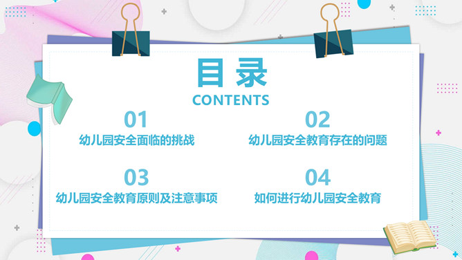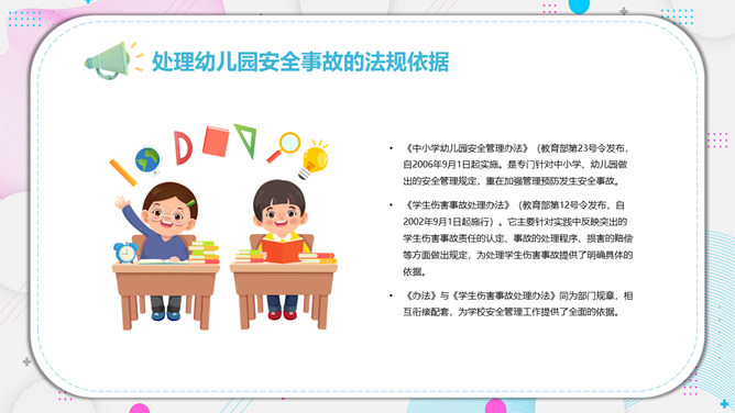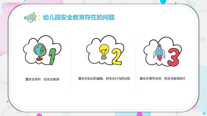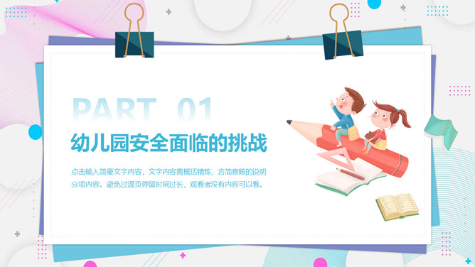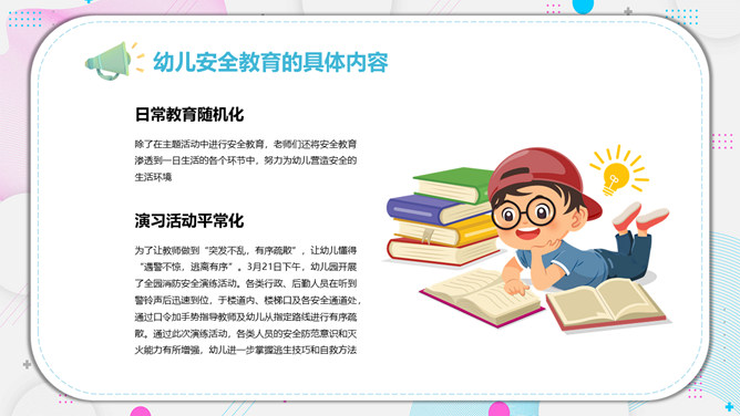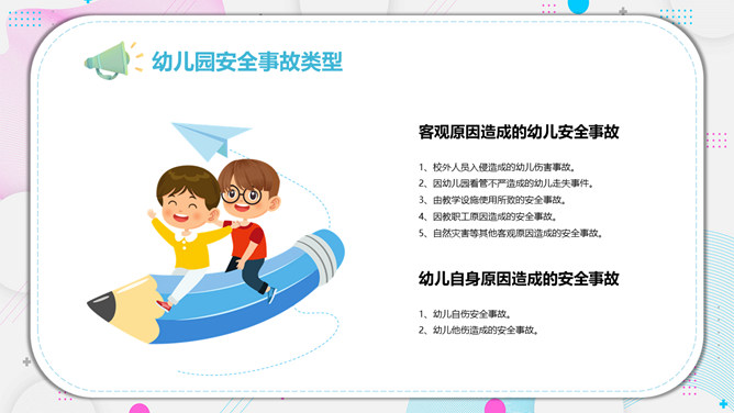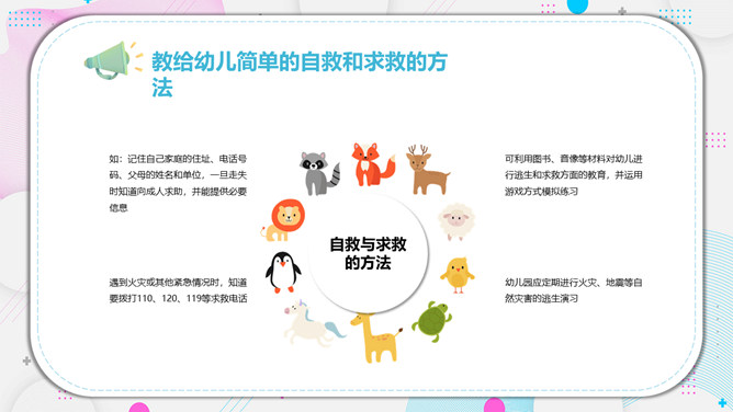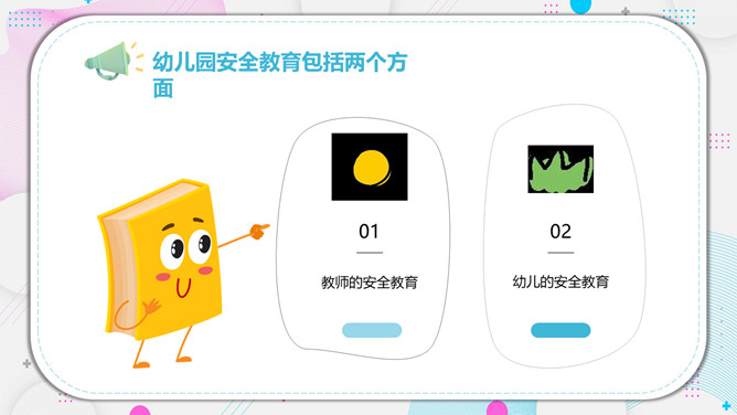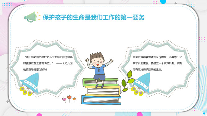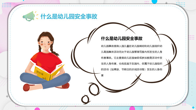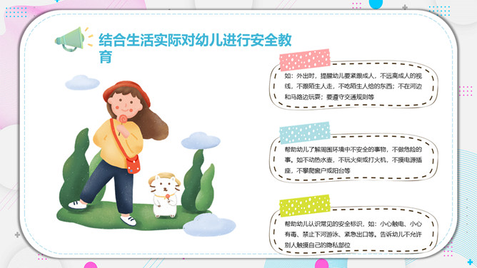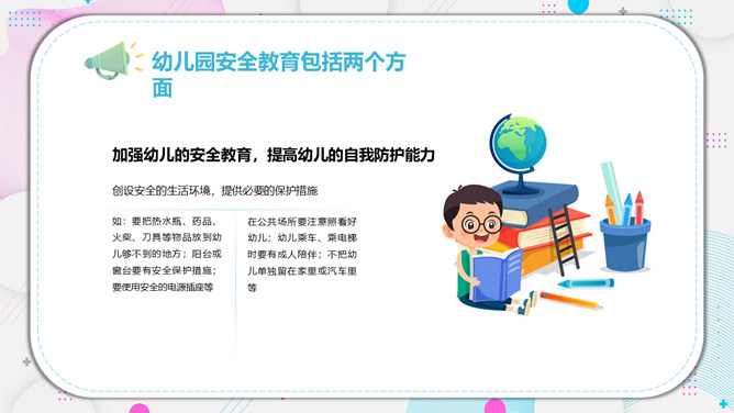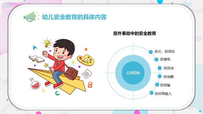 卡通幼儿园安全教育PPT课件模板。一套幼儿园小学安全教育课件模板,可爱卡通设计,动态播放,多种页面类型。