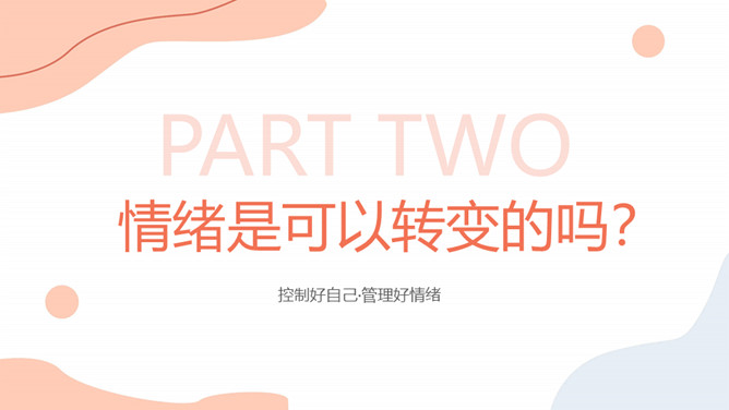 情绪管理做情绪的主人PPT模板。包括我们的情绪、情绪可以转变吗?情绪ABC理论、做情绪的主人等内容。