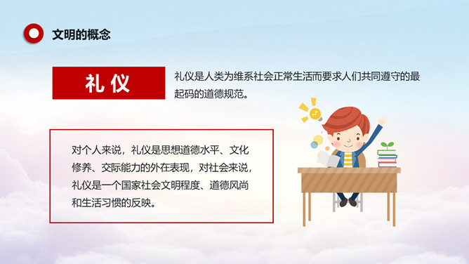 小学生讲文明懂礼貌班会PPT模板。包括什么是文明礼仪、校园礼仪、校园文明规范、校园不文明行为等内容。